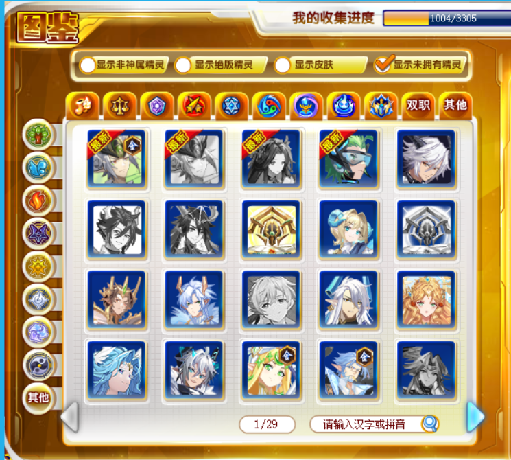有关精灵进度问题,我打过的精灵我可能不会更新。没打的精灵(我氪vip才会打)除非限量限时。所以这个贴还是有关精灵养成和纳新的