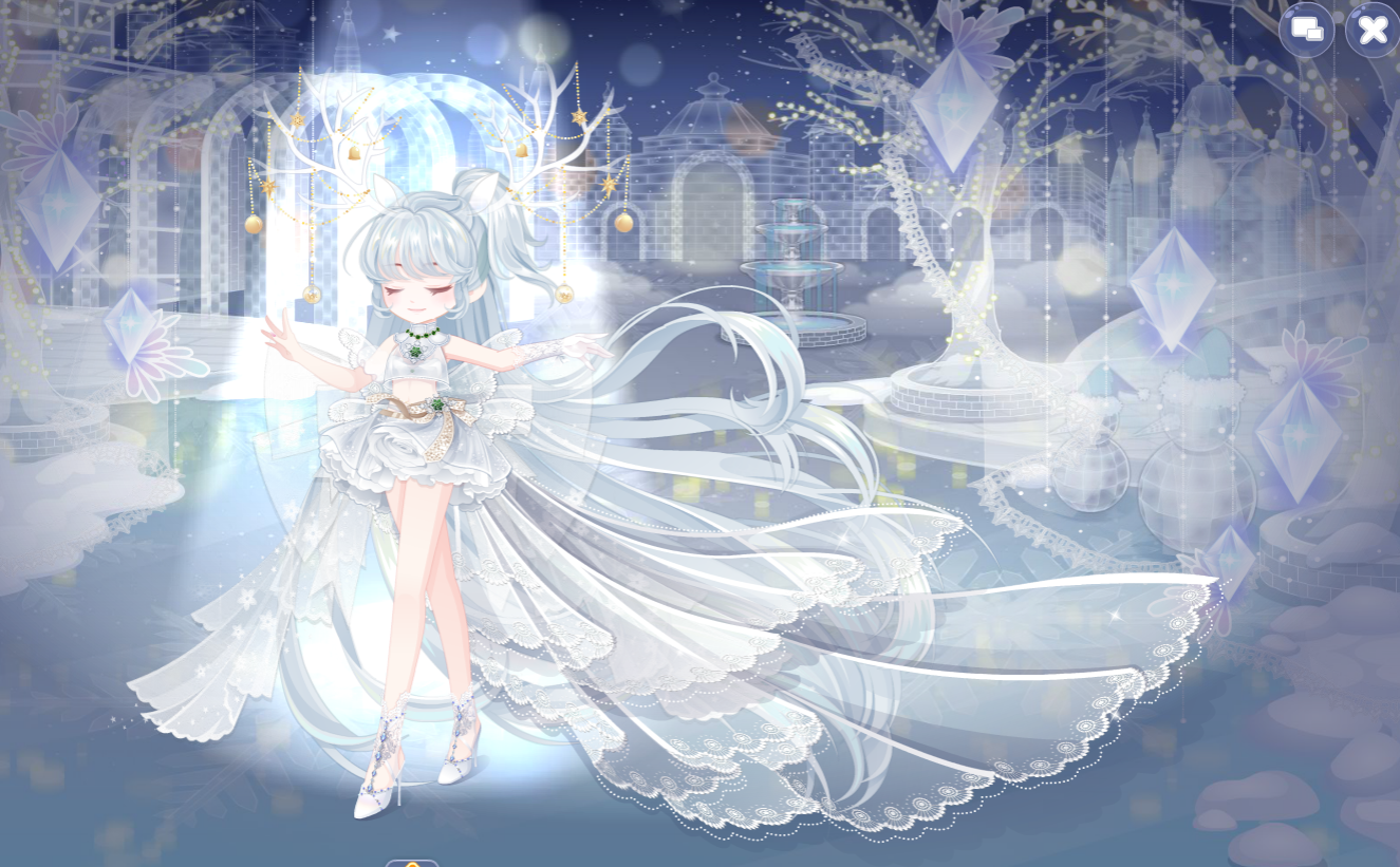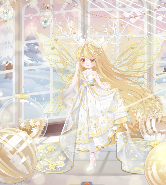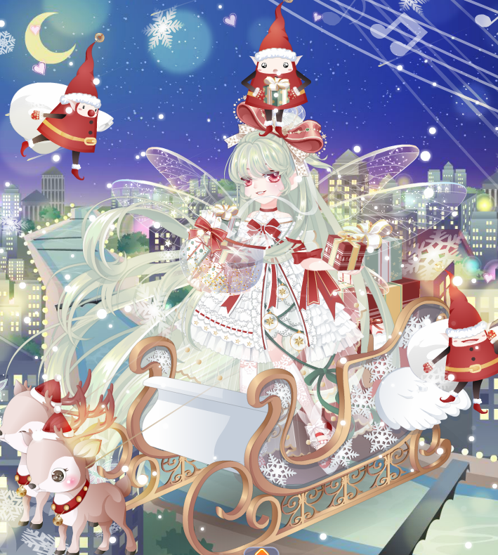 时光精灵微笑妆,风之女神右拨发型,风之女神皇冠,梦·妮娜圣诞鹿角,