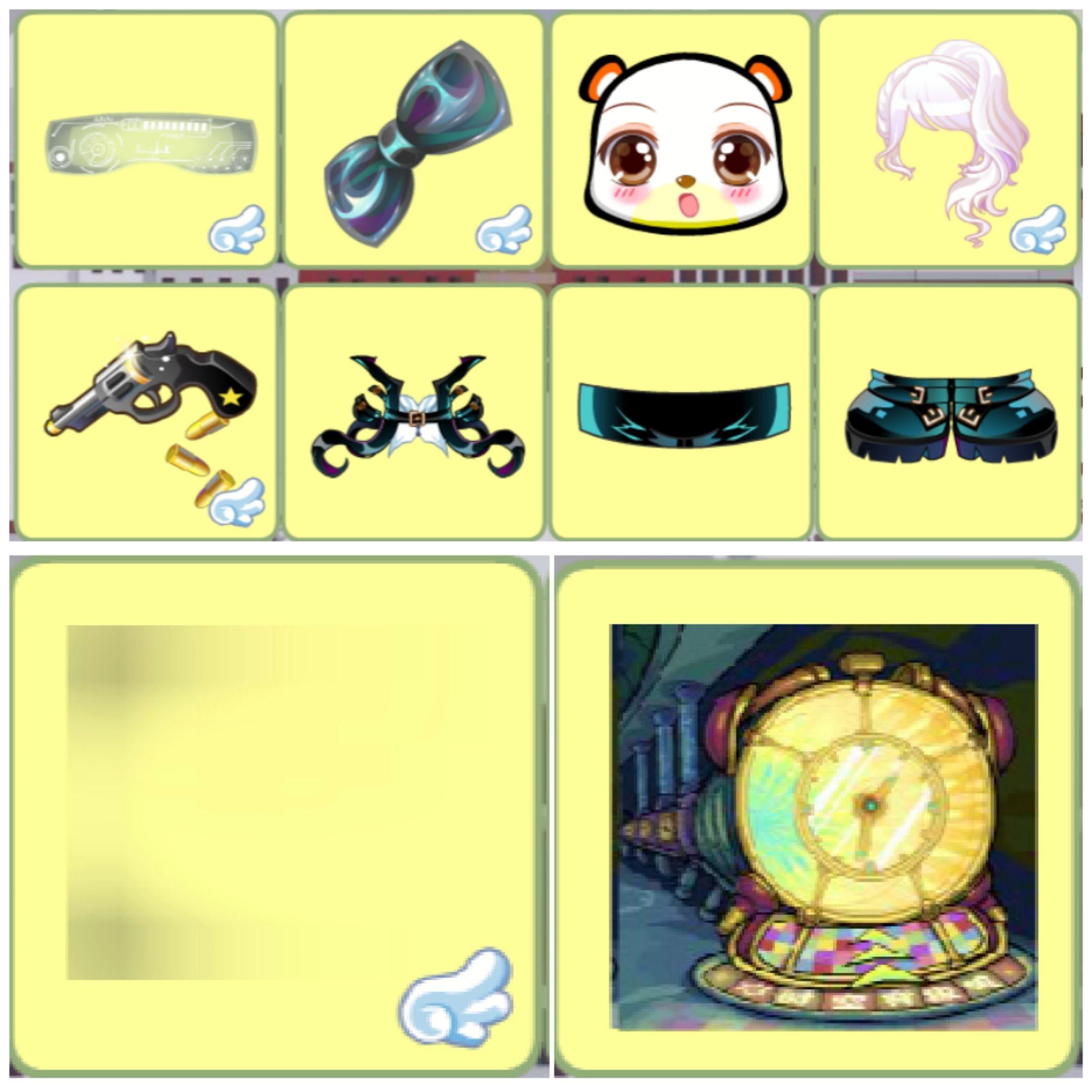 小鹿斑比眼镜,小鹿斑比蝴蝶结,巧克力惊奇妆,俏丽边马尾银发,巨星舞蹈装饰枪,怪盗夏铃黑衣装,怪盗夏铃黑皮裤,怪盗夏铃黑皮靴,白羊熊熊滤镜,奥比记忆·地下室