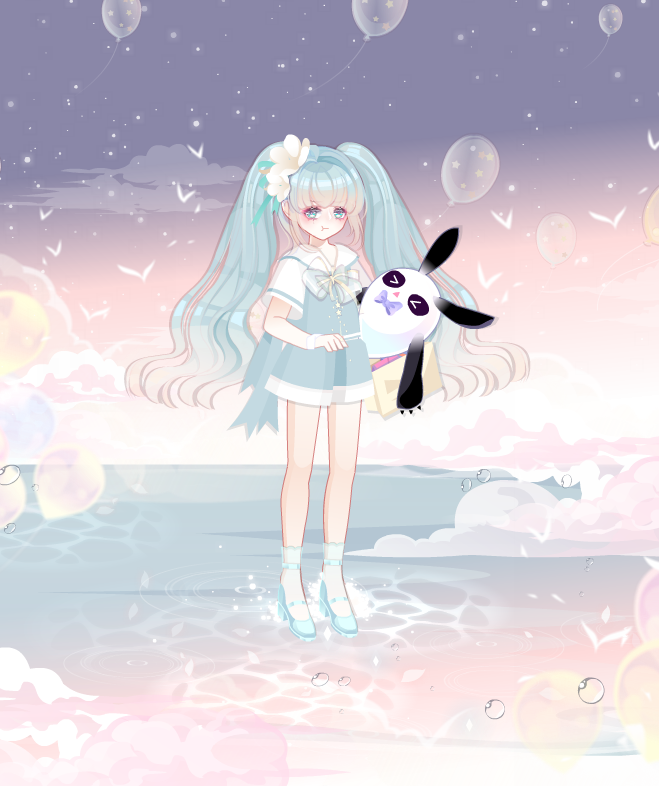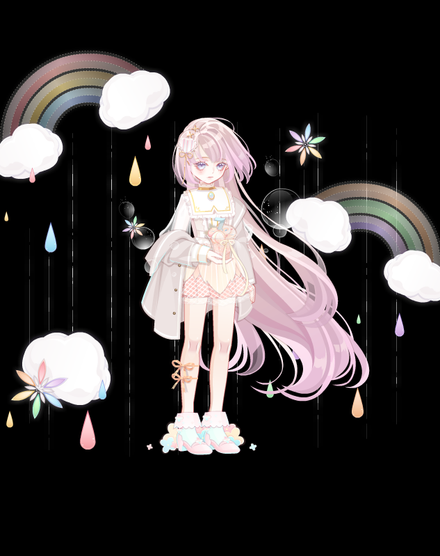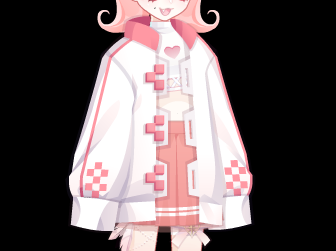 这个外套就是那种大几码的外套,长到pg那,把手盖住,穿起来挺可爱的,这种外套的好处就在于不穿时能很明显看出这个上衣和这个下衣搭配起来是很怪的(例如细小的穿模、上衣太高下衣太低导致腹部露出太多等)穿上外套瞬间和谐很多,而且挡住手看起来就高级了