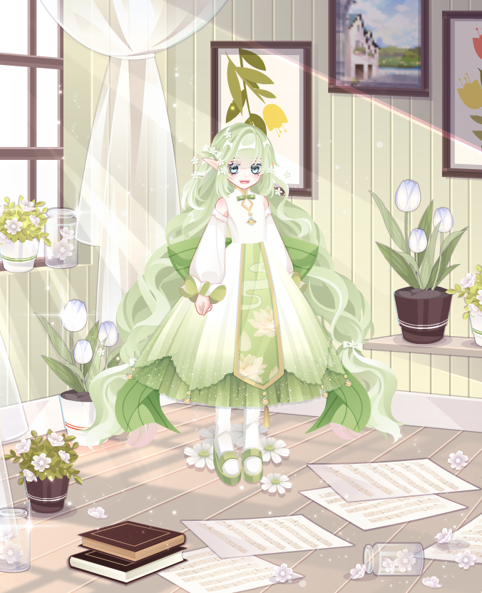 冲着外套搭的,本来想着这个颜色跟白夜灵魂祭应该挺搭的,结果发现裙子太蓬穿模了,然后找了个奇怪但又合理的裙子,因为白夜的裙子没用上,所以咱用了头饰()外套上连着坠下来的带子走心的,本来想用舒芙蕾的假肢,但是挡住带子了,所以咱给换掉了