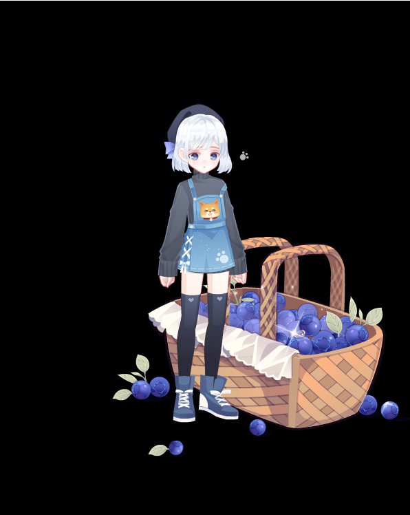 本来想用酸甜蓝莓的背饰的,结果发现以前不拉长腿的鞋子站着像浮空一样,所以只用篮子