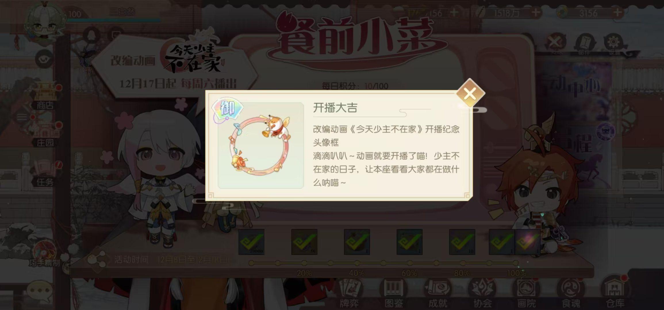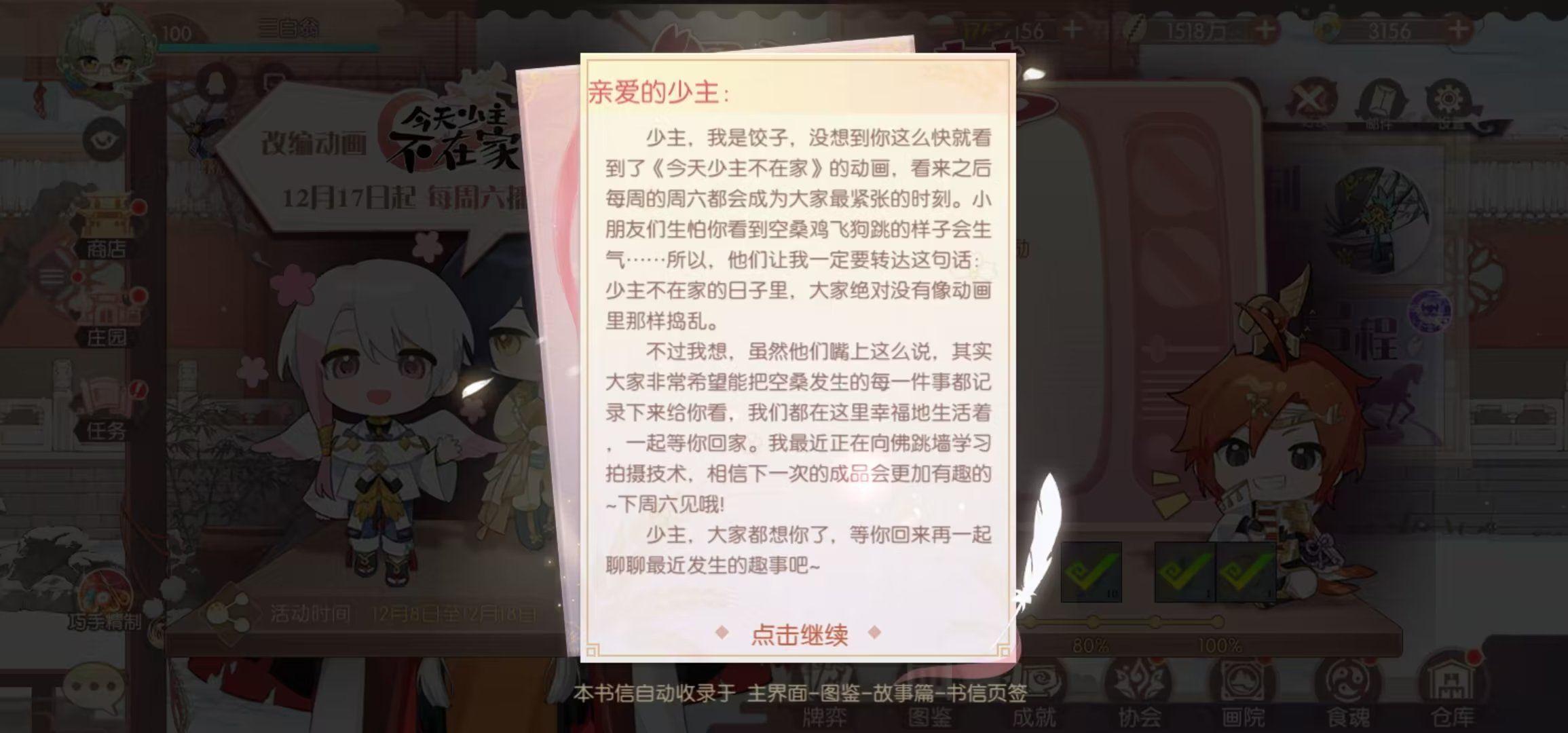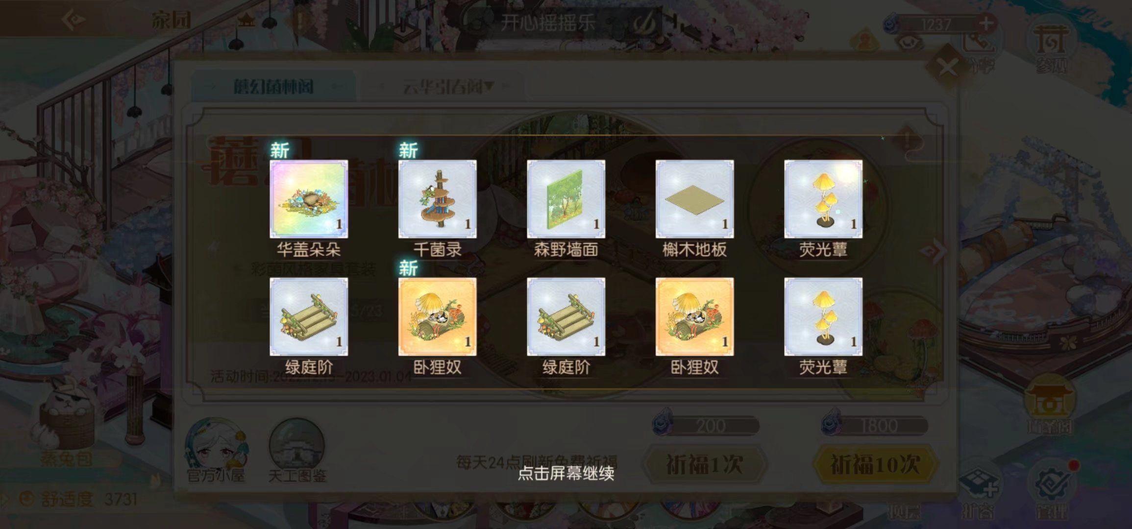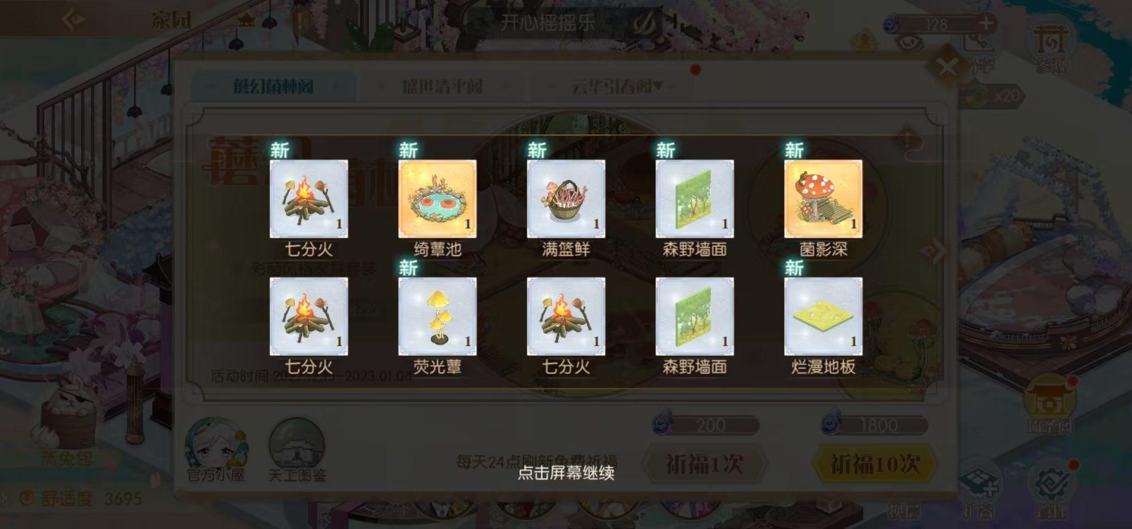 完成剧情+活动界面的菌子火锅+家具十连。