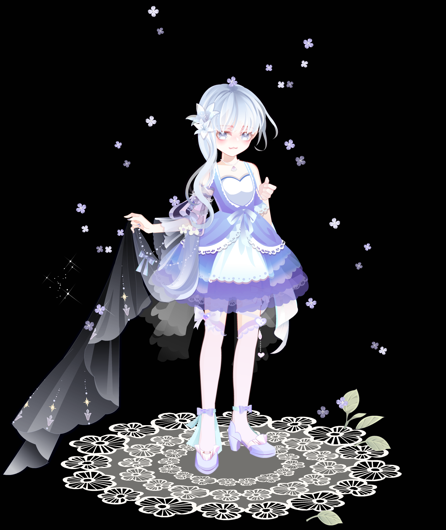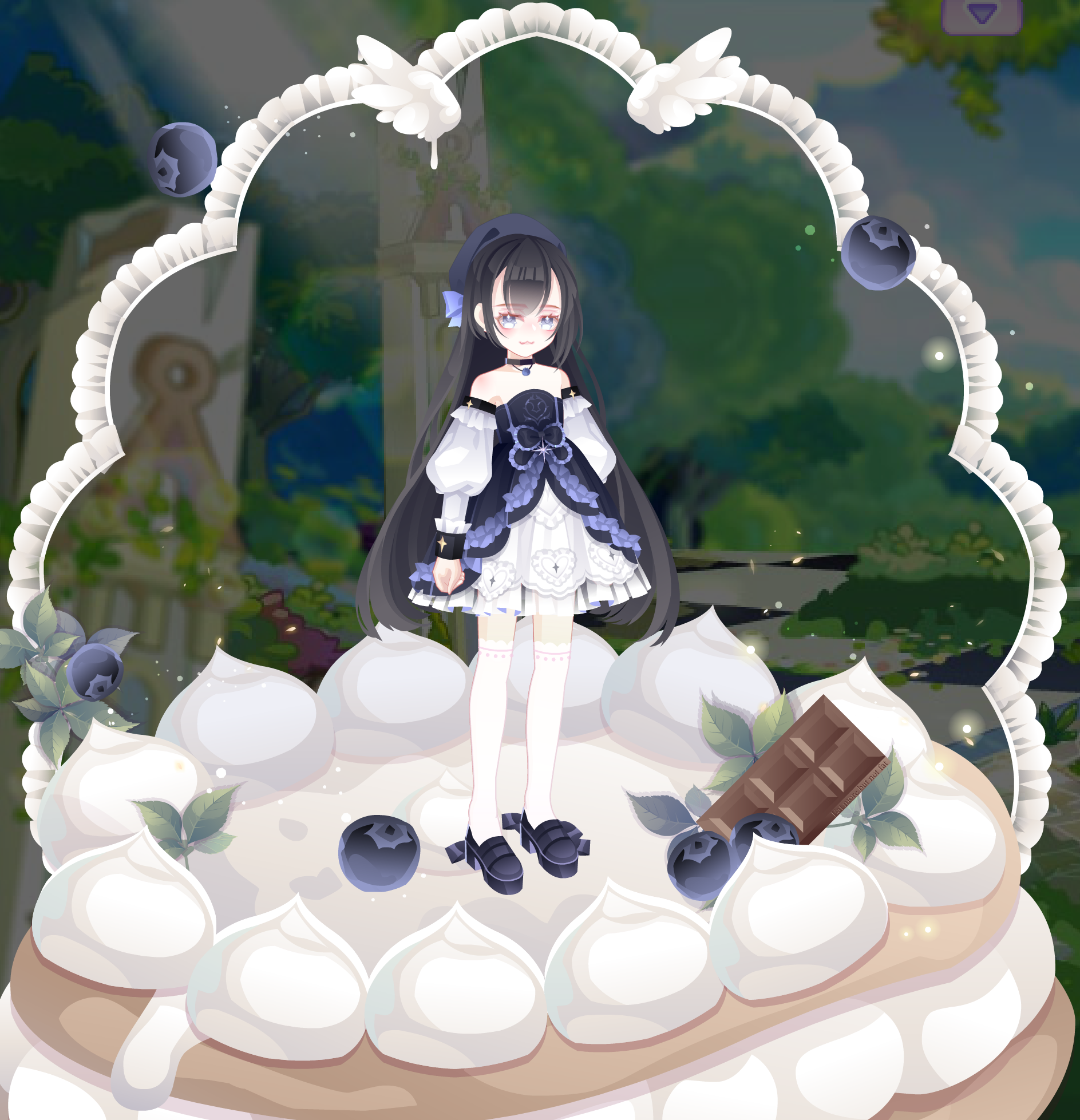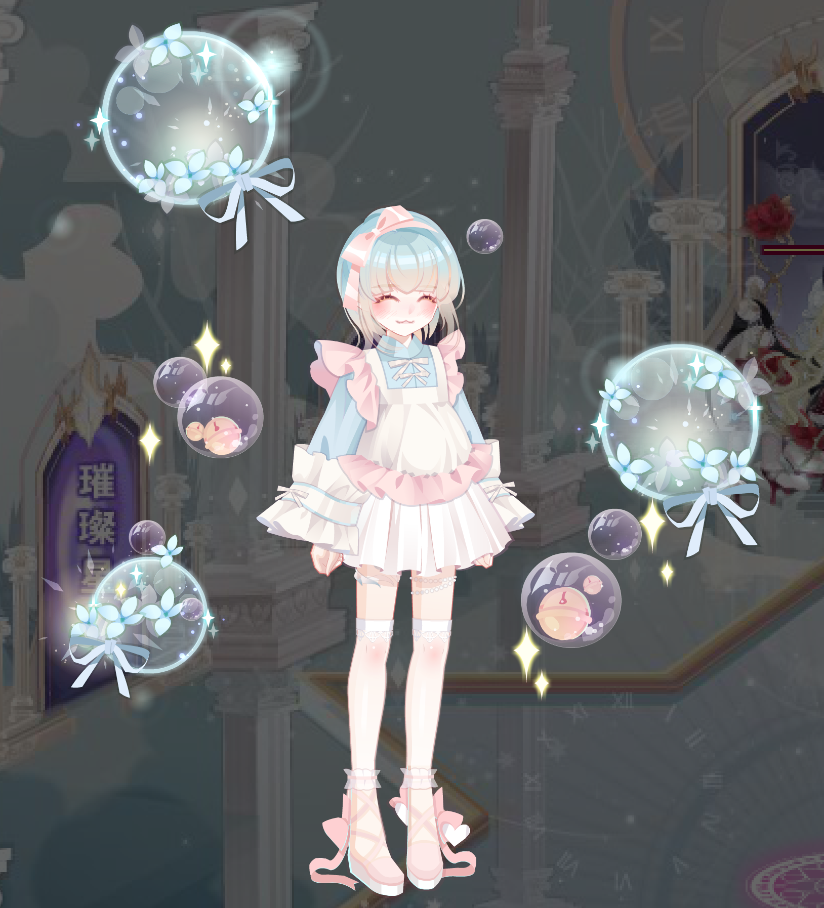 雅宝的粉蓝活动套还挺多的,这个比较好搭吧。下裙本来想穿粉黛绣球,但是效果有点怪(?)