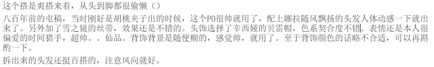 头发需注意的问题和上条类似,不过没有颜色上的限制,算是非常百搭了。翘起来的小呆毛也很可爱嘿嘿