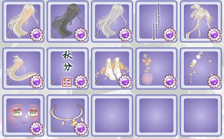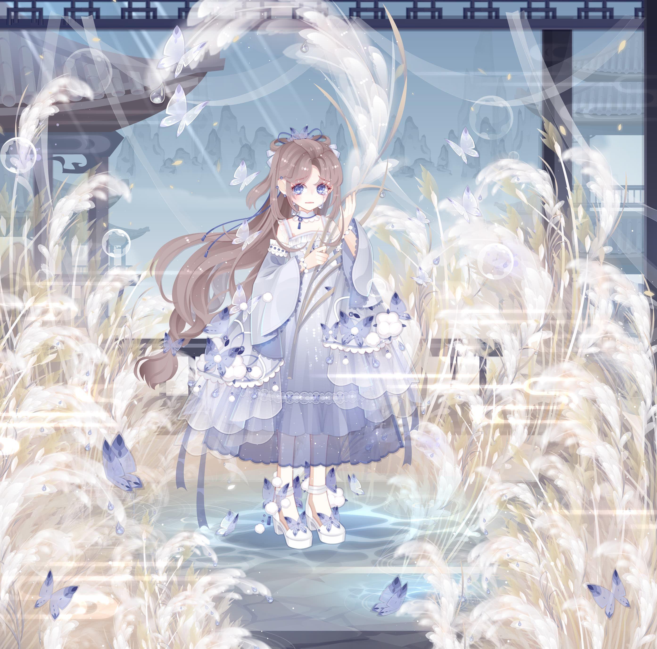 蝴蝶画得还可以,鞋子、外套的精细度都算不错。芦苇丛也还行,可以很好丰富画面。表情的眼睛大大的很可爱,TV表情包会比原表情更好搭配。其他部件中规中矩,裙子稍微有点显孕,头发也一般。色系不是很多见(尤其是在中式风格中)不推荐强行同色系搭配,会搭得很痛苦。