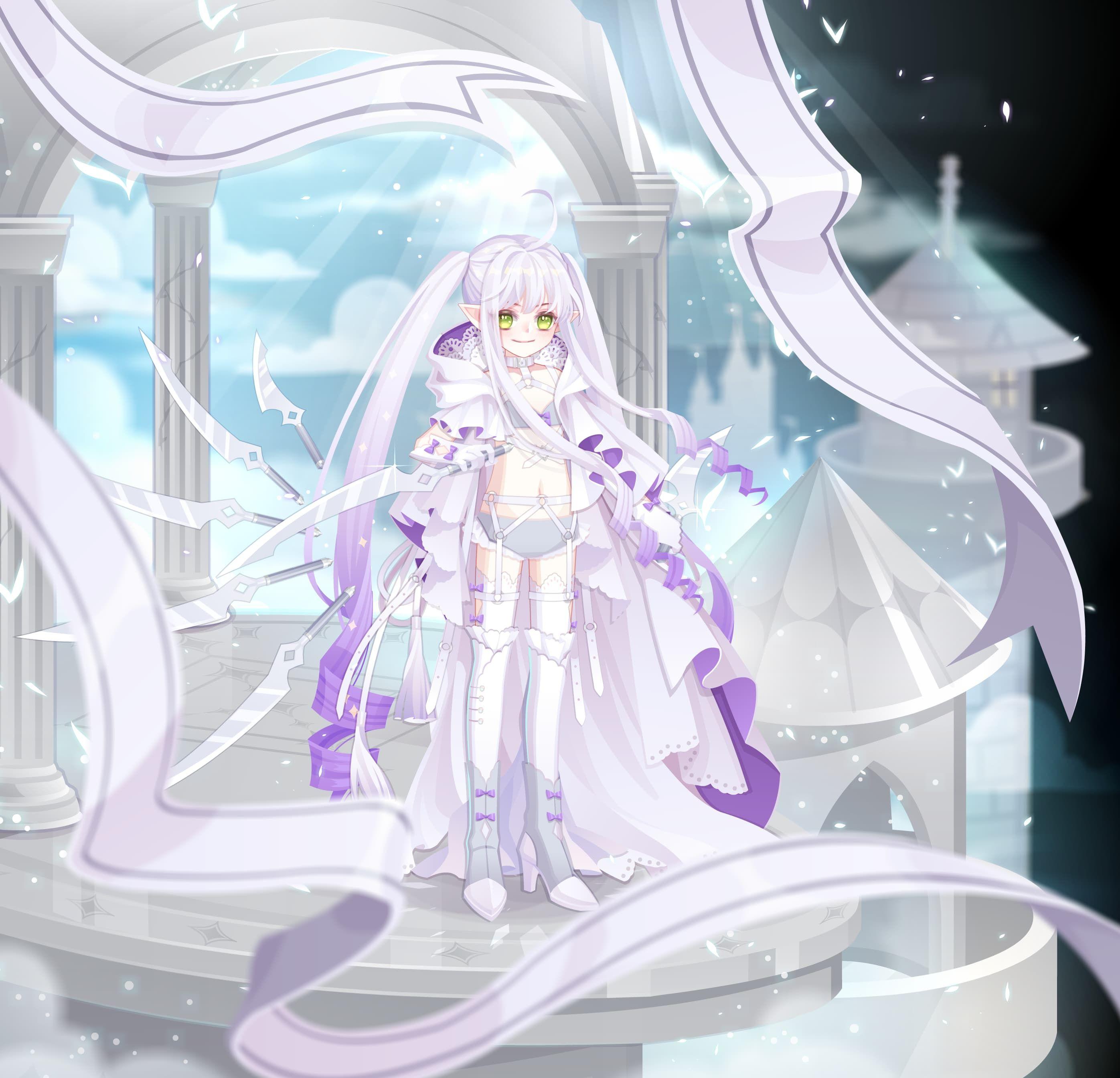 魂挽系列的一套,我心中的偏古早画风天花板之一()整体的配色是冷色调,契合葬礼的主题,但是红发又显示了米莉娅热烈的性格,对比带来的套装冲击力很大;每个部件的细节都挺不错的,头发和头纱略纸片,但是背饰、裙子的质量都很不错,是用心画了的。质量放在刚出那会算是很强了,不过放到现在来看只能说中规中矩。