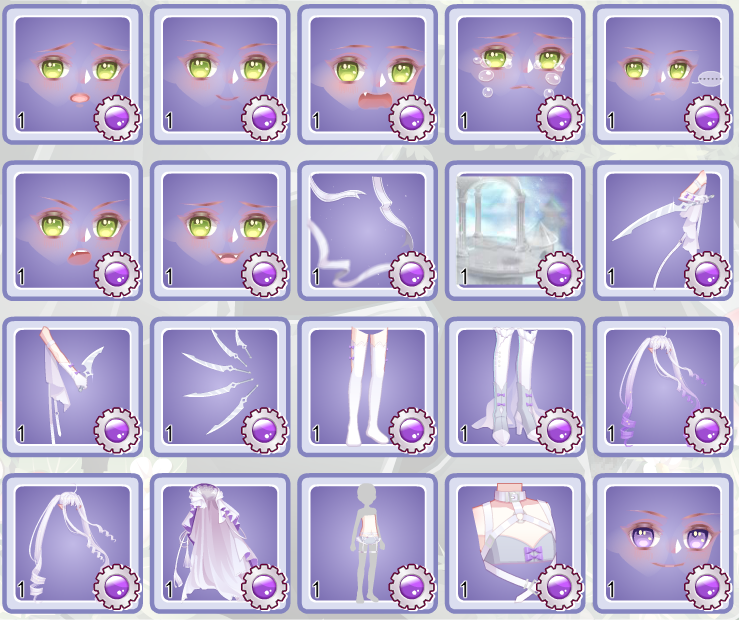 比较吸睛的是蓝紫挑染的头发和背景的布置。其他部件说实话一般,但是胜在还算好搭。袜子个人不是很喜欢,质感没画好,和鞋子搭在一起就略怪,还没单拆鞋子,库路西!!收拾你感觉是男女都可以试试看能不能搭,挡模布老问题了就不多说了,建议左右手一起用不然会有一点点奇怪。
