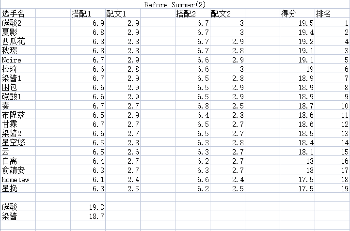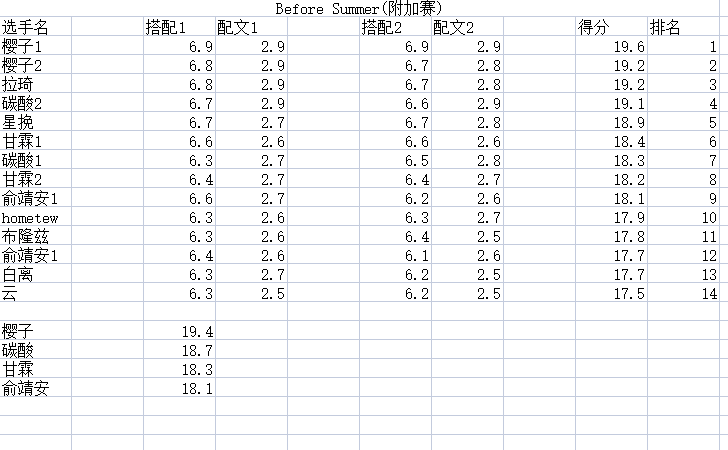 附加赛评分与排名已放出,感谢各位圈友的参与和支持!让我们恭喜樱子、拉琦、星挽三位选手分列前三名!