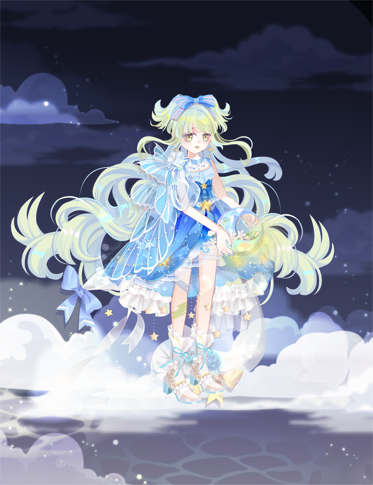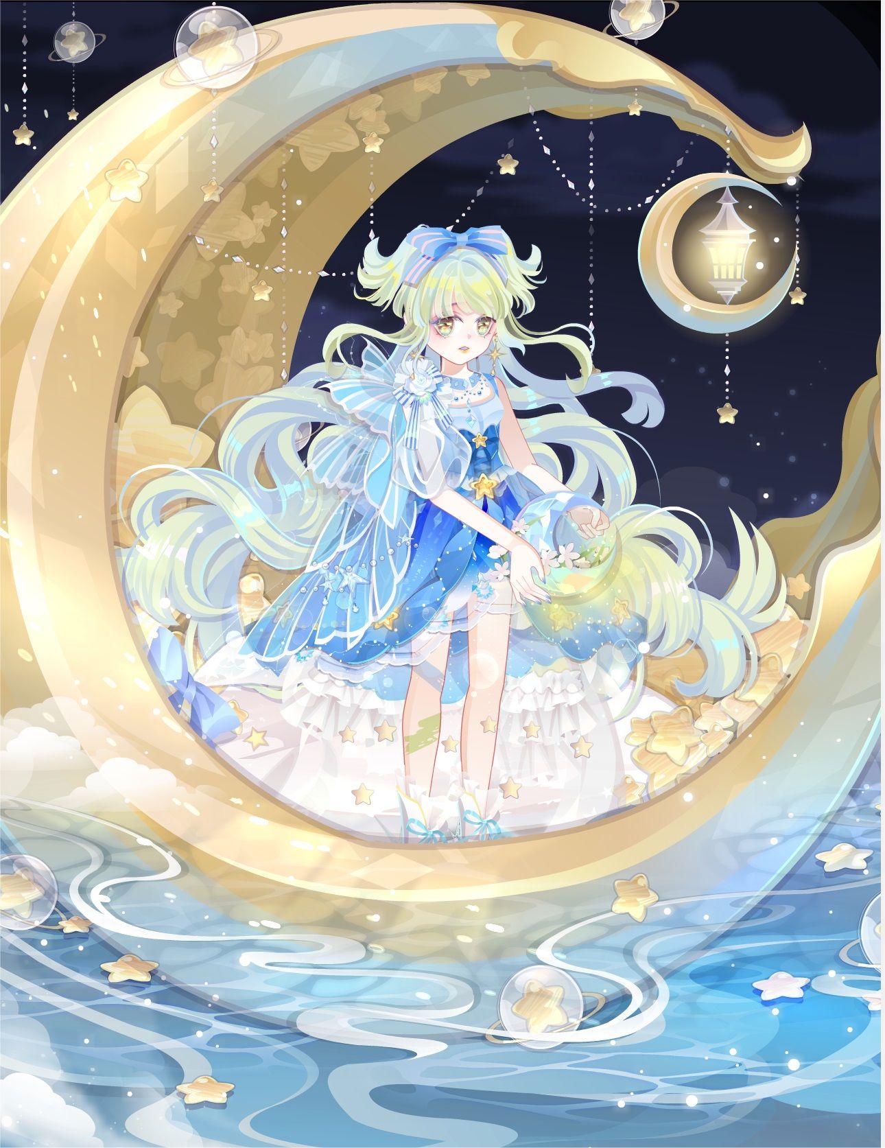 附:增加“星灿月亮船背饰”的版本。(没有优化背景细节就硬加进来的,单纯觉得“在大月亮里捧着小月亮”很好玩。)