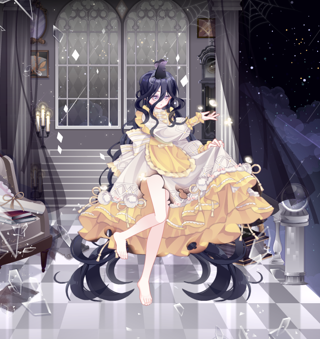 基础版本的背景,没有触手和打光迷雾什么的,拆出来了一个黑色系的背景,还是蛮有氛围感的,没有多余的东西但是也不会觉得太空了,去掉触手以后可以更清晰地看到窗后的景象,应该是海底布满了鱼类一样的胖鱼