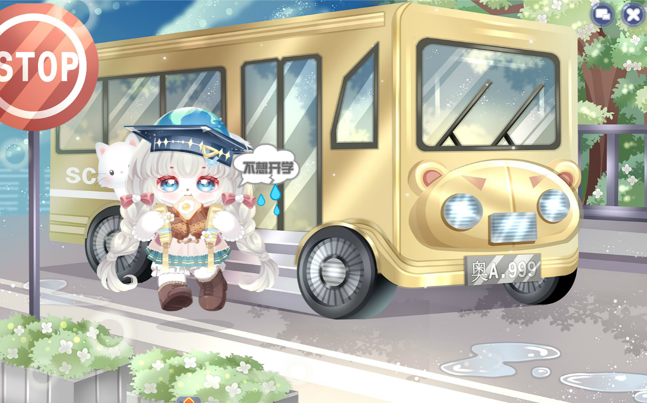 搭配部件:火柴踏雪爱意靴、奥比菱古校园猫、上学日记双辫发、上学日记双肩包、上学日记蝴蝶结、上学日记面包嘴、上学日记短裙、奥比学者帽、芙蓉蟠璃生气、火柴围住你心、萌比小可爱大衣、上学日记前景、上学日记校车、不想开学心情泡泡
