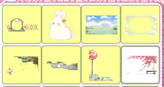 记忆·璀,兔兔护士前景,庆典巡游马车,电竞粒子光感屏,落樱阳光洒落,重生追寻神殿景,萌萌花熊花云,未来偶像城堡,未来偶像原野,雾香星香水河,虔诚圣音鸽子,华夜蔷薇花瓣
