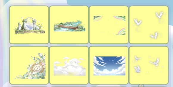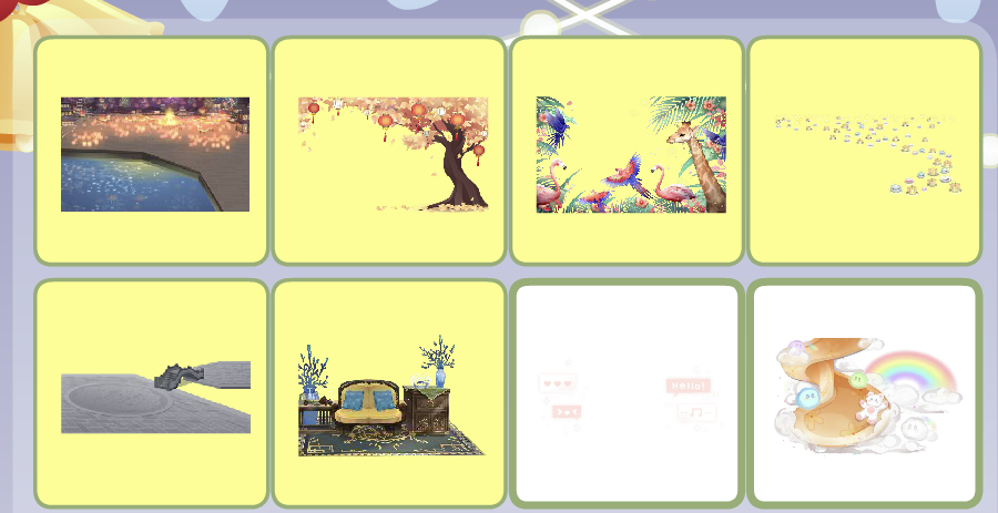 龙腾颂背景、瑞福之树、夏日动物合唱、抚琴赏月许愿灯、抚琴赏月拱桥、龙宫烟袅隐居处