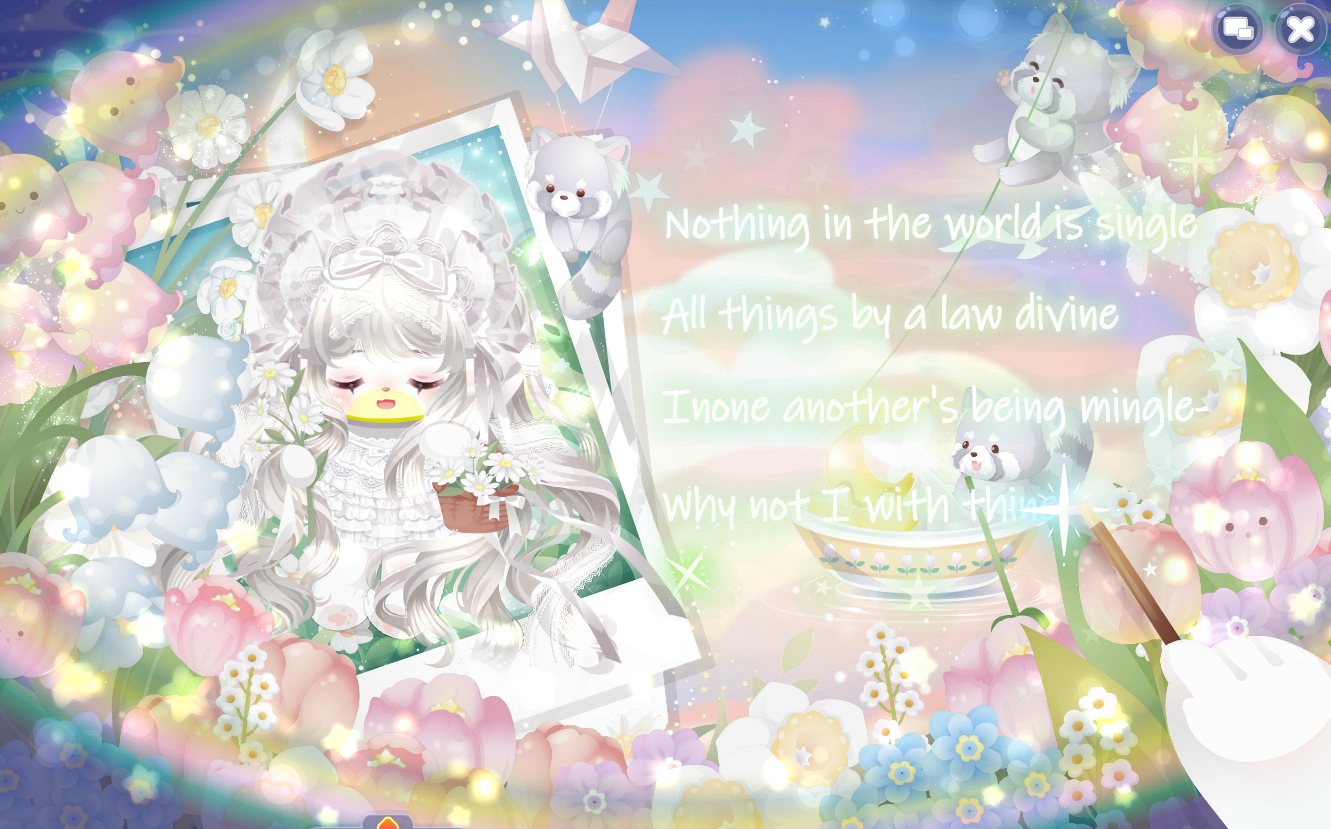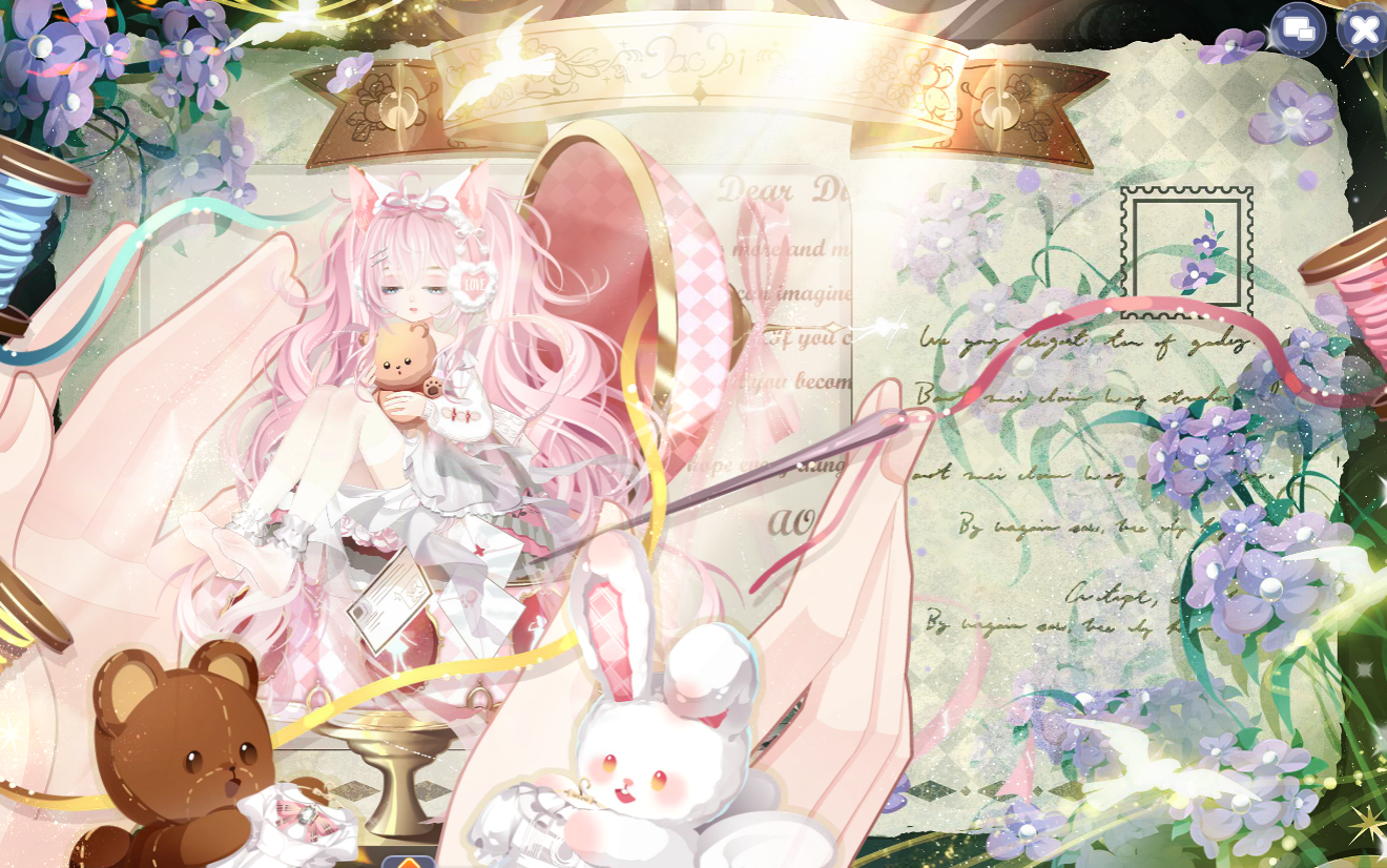 搭配部件:樱誓漂浮腿,绒爱粉纱裙,恋人赴约耳挂,甜心女巫辫发,雾霭灵狐雪狐耳,睡美人觉醒颜,心钥谧匣,镜·紧张,镜·忠诚,记忆·璀,春日邮馨背饰,文艺信纸背景,落樱阳光洒落