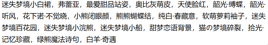 小王子挚爱玫瑰,小苍兰长发,迷失梦境短裤,迷失梦境耳朵,爱要说给你听,指挥音律沉浸颜,