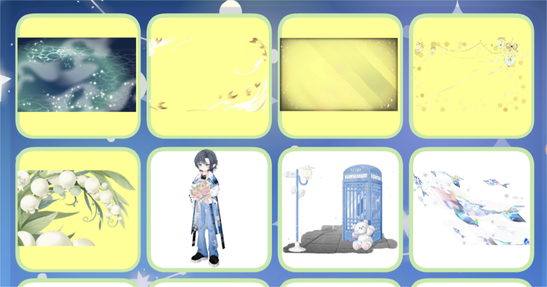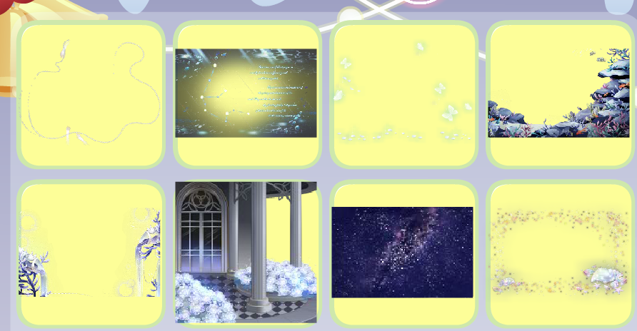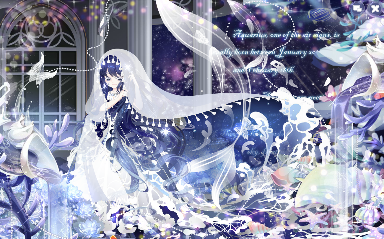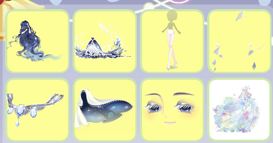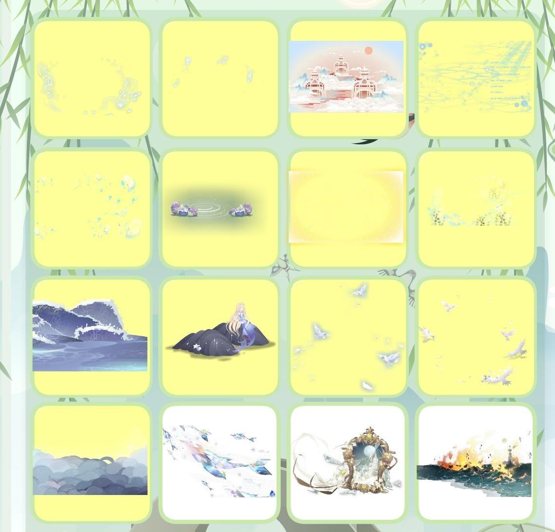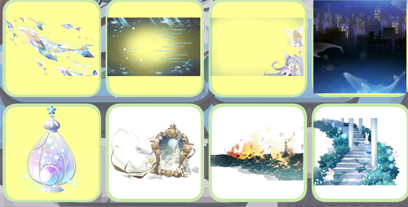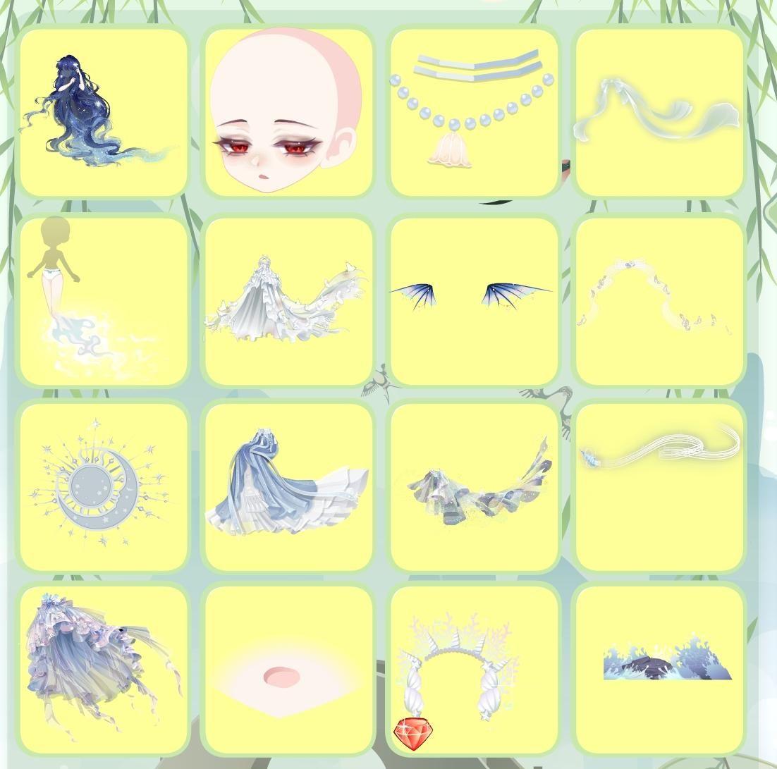 夜荷梦谣珠链、水瓶座星言、绿野仙境仙蝶群、人鱼·珊瑚礁群、人鱼·涓涓细流、费尔邀约庭院、宝石星空背景、瞬·时光炫彩贝壳