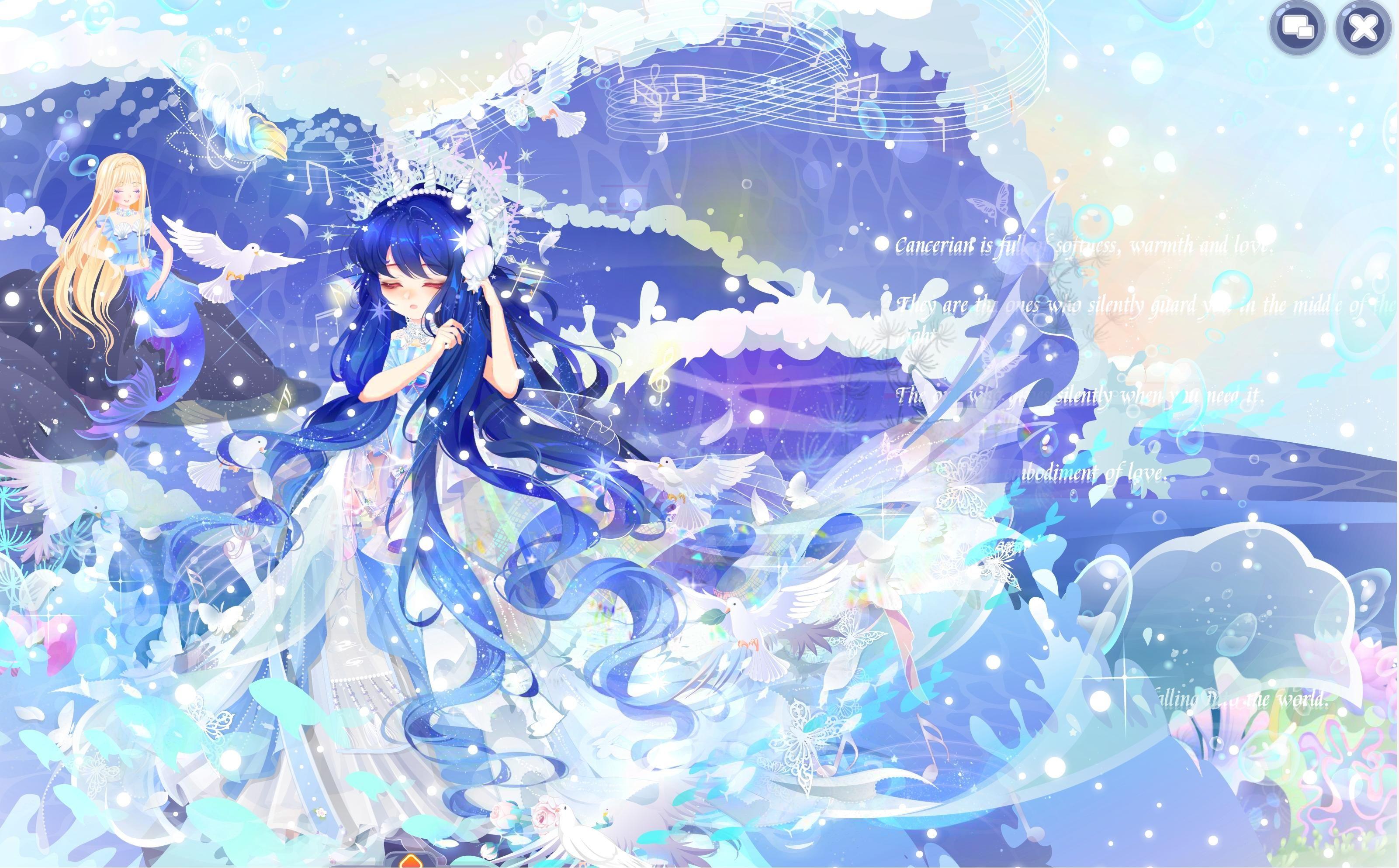 搭配部件:人鱼的祈愿、海烟明月、蓝吟巨蟹站姿、南国琉璃碎颜、南国女王流华、水奈披风、魔卡小影神秘妆