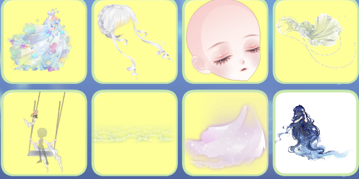 人鱼的歌谣、浮世琉音束发、浮世琉音闭眼、夜荷梦谣头饰、油画少女秋千、白与风云浪、星月梦语白纱、