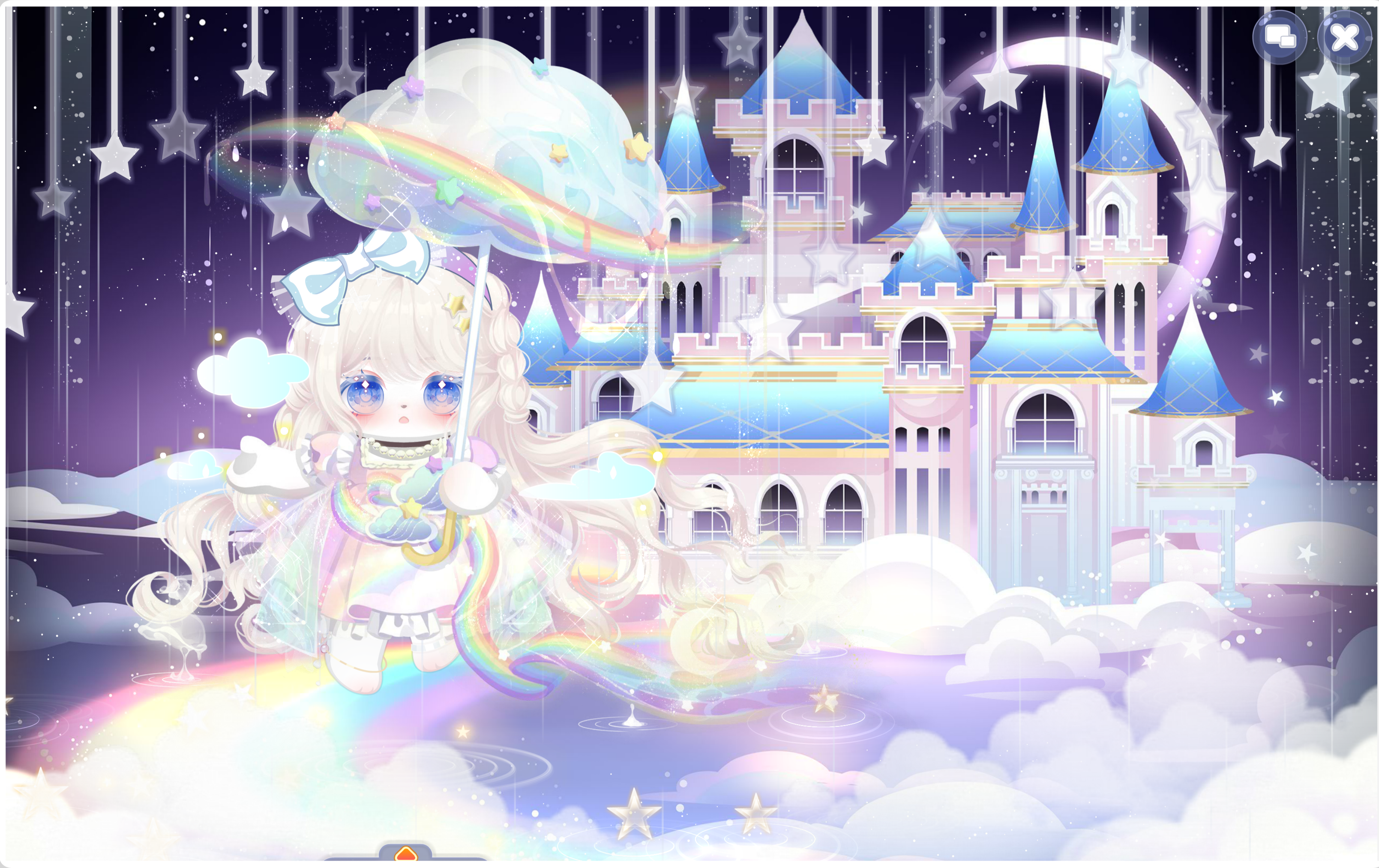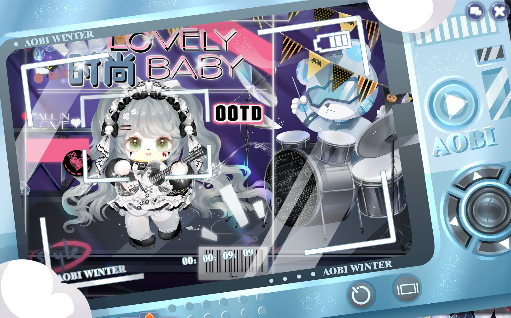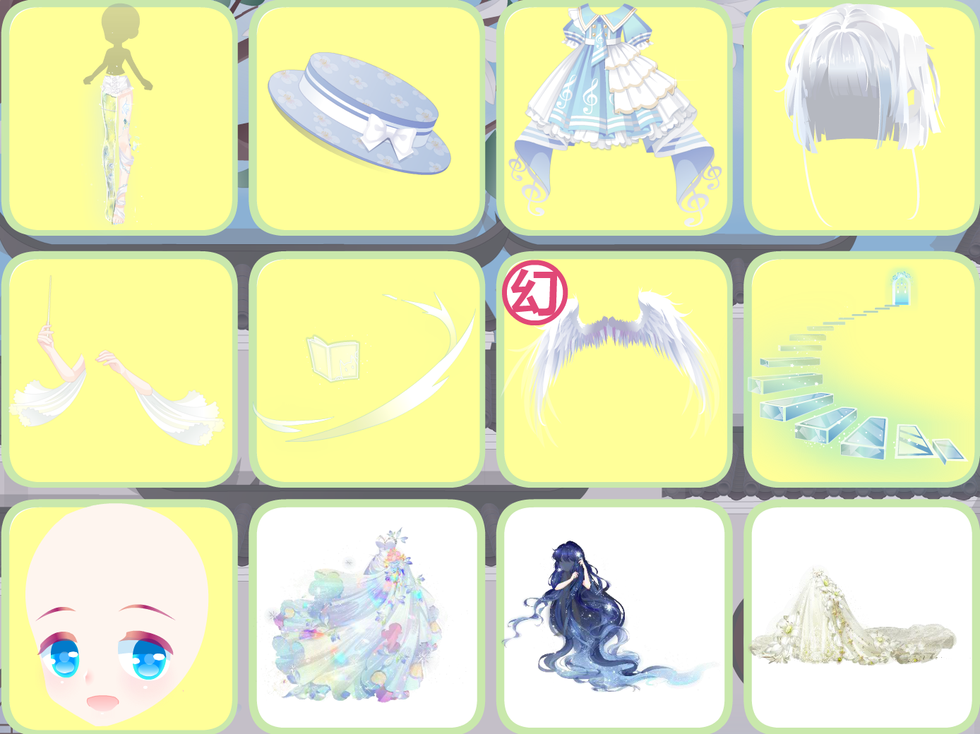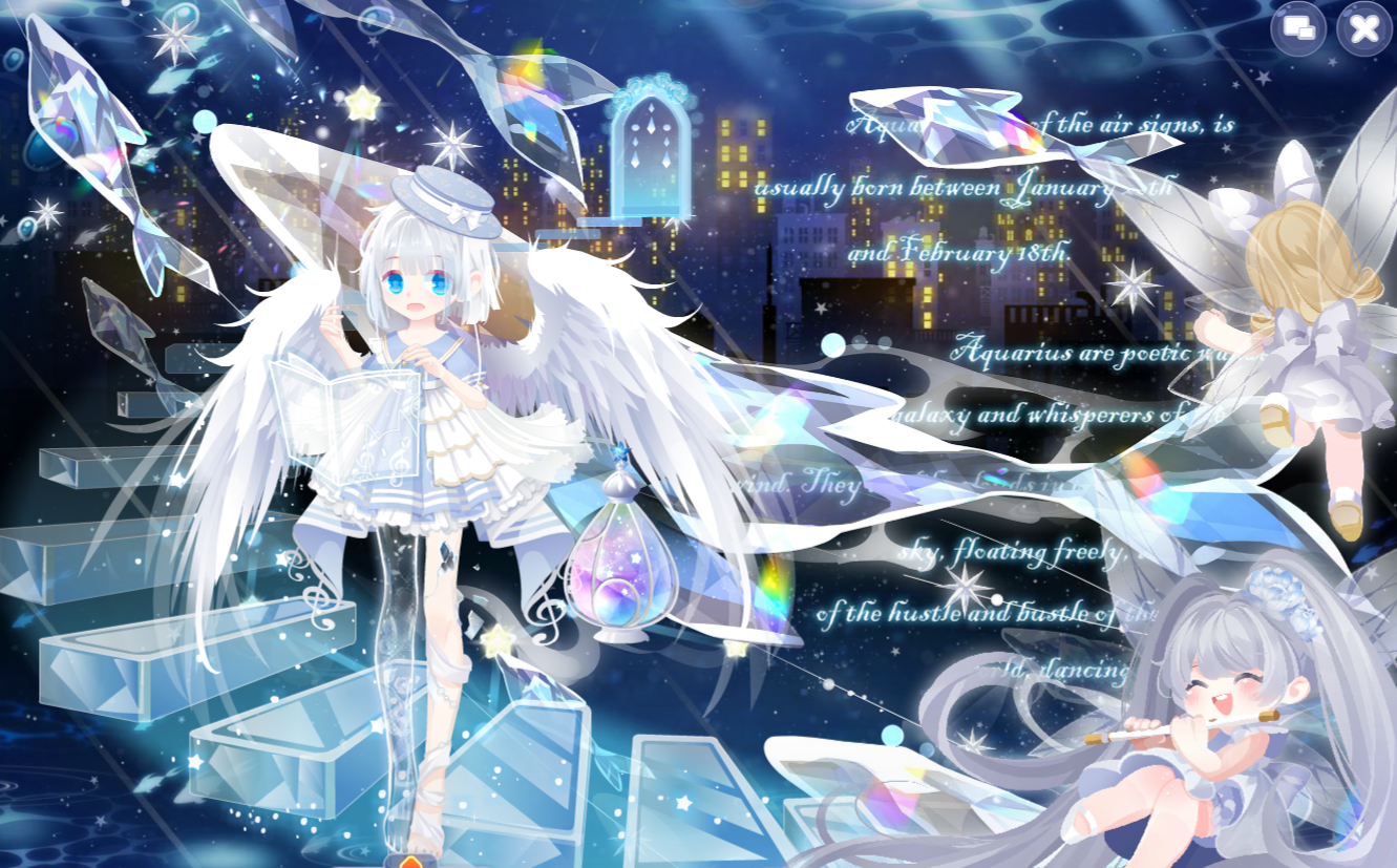 搭配部件:独白玉骨璇玑,亲子庄园小礼帽,娜塔莉音乐短裙,七夜蓝歌发型,钻石海洋指挥,白与风书本,妖神白泽翅膀,天后蓝宝石阶梯,艾雪芭比精灵妆,失落的旋律,水瓶座星言,云镜新生,星河城市夜景,百变梦幻星灯饰