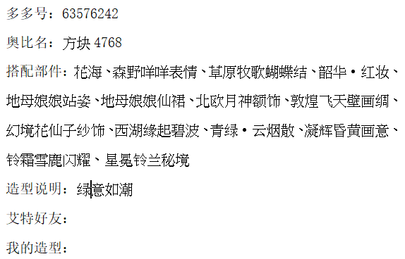 搭配部件:人鱼的祈愿、独白月落风至、迷夏踏梦姿、莫兰迪飘花裙、寰宇心动霓光、人鱼·低眉垂眼、失落的旋律、流年寄梦梦湖畔景、鲸落万物之灵