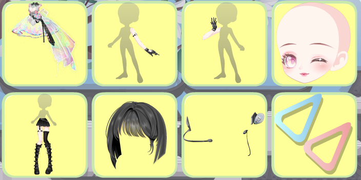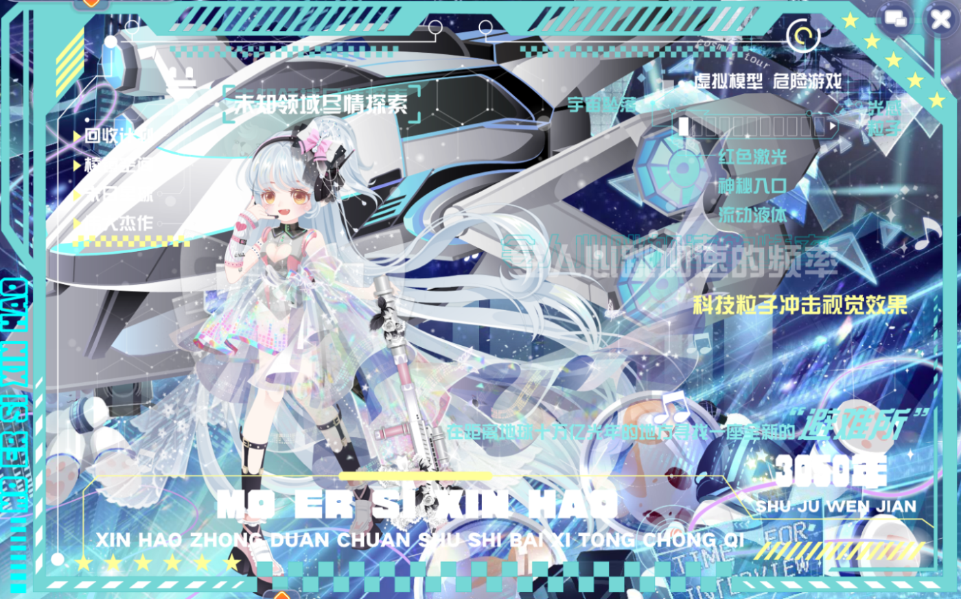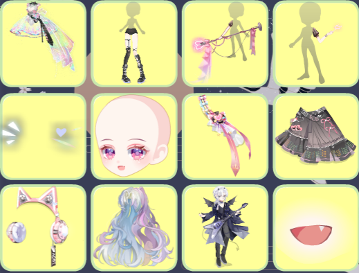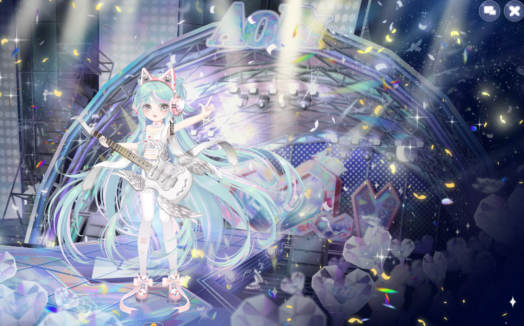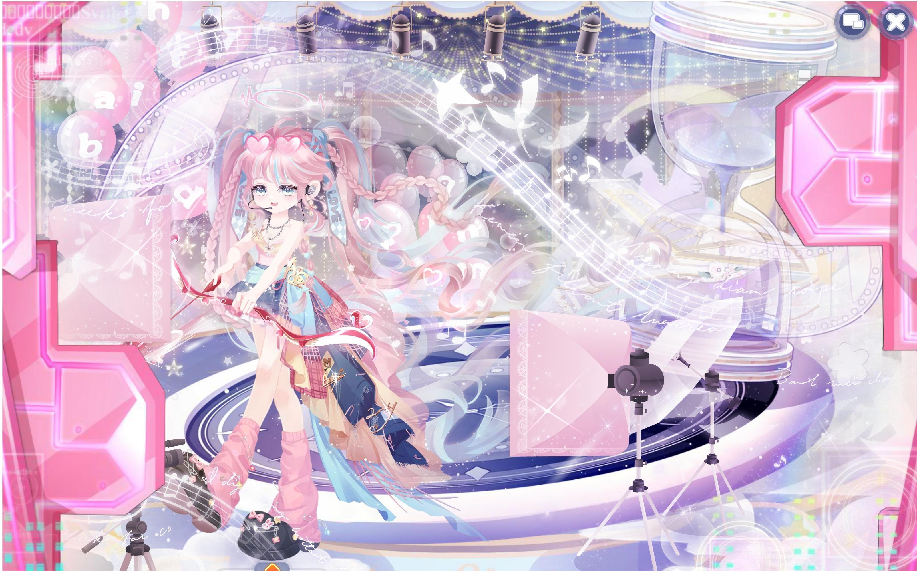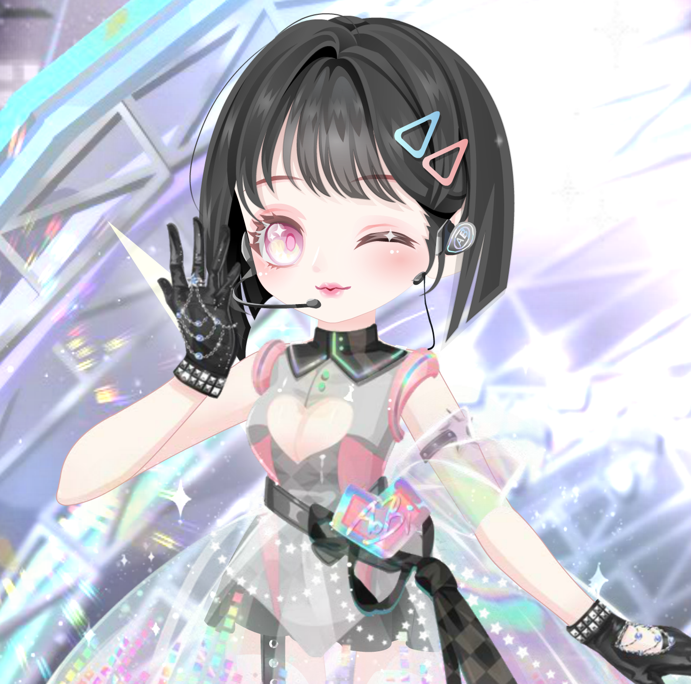 搭配部件:视·科技、视·霓虹、萤蝶仙女法杖、云上轻舞、藏匿礼物发卡、循环心跳、心动来电姿势、偏光彩虹、星光闪耀耳麦、电竞粉猫猫耳机、音乐杂志封面、音乐杂志舞台、心动赴约清吧、祭时白鸽、算一卦边框、星光闪耀探照灯、鸦·逐日狂徒、暴走潮流英特网、蜕变星秀场观众、造型说明:音乐课代音符