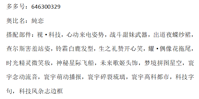 搭配部件:(部件名字和截图)部件需要文字版注明,不要只放图片哦!只放图片可能不会被