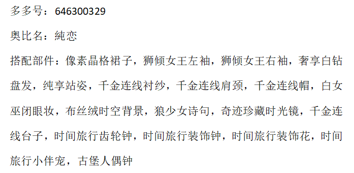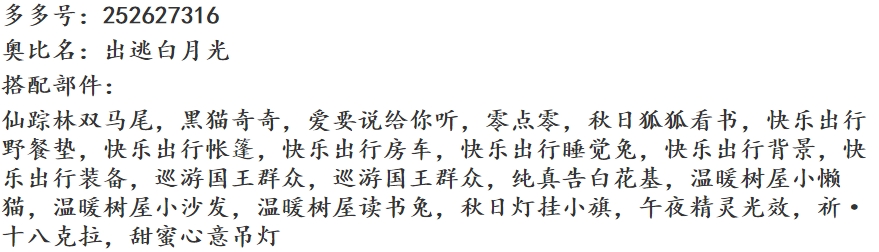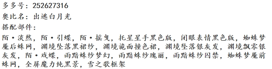 搭配部件:(部件名字和截图)部件需要文字版注明,不要只放图片哦!只放图片可能不会被