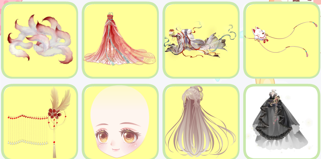 墨韵画境发、狐灵幻羽躺姿、花落映雪头饰、云间风起、幽蝶女王侧雅妆、再续前缘耳饰、踏雪寻梅斗笠、温婉绣女椿花、清幽狐仙尾巴、