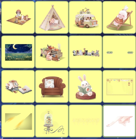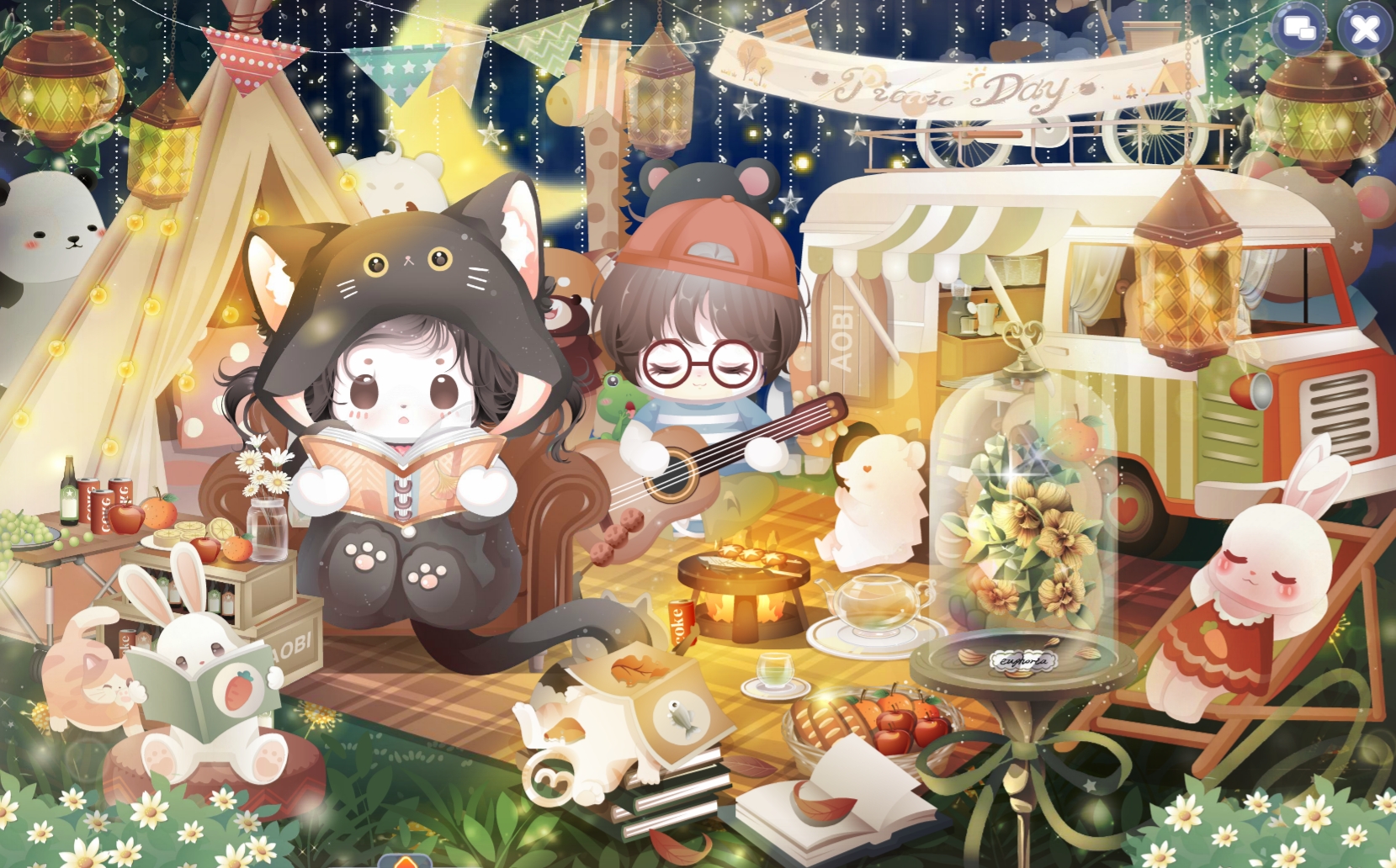 搭配部件:快乐出行帽子、鱼鱼美梦心思、旧梦白净小脚丫、纯真告白短裙、初冬热可可、奥比棕萌皮、青云白兔尾巴、小熊闭眼颜、芝士欢喜过大结、手持尤克里里、霜雪玩偶发夹、星海歌姬星碎夹、快乐出行背景、迷失梦境小浣熊、仙踪博美、温暖树枝灯装饰、温暖树屋小懒猫、温暖树屋喝茶猫、温暖树屋读书兔、闲暇时光门栏、草莓聚野营、薰衣仲夏萤火虫