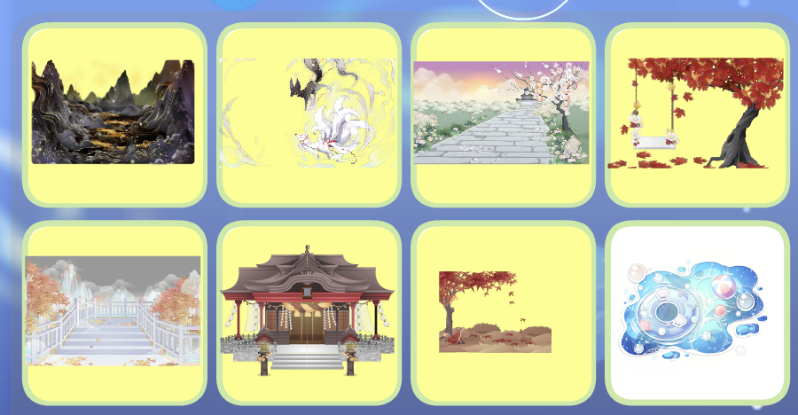 狐灵幻羽赴山海、缘起·狐灵送缘、寻古洛阳全景、秋日枫树秋千、东方秘境瀑布景、稻荷神使神庙、重阳枫叶红狐狸