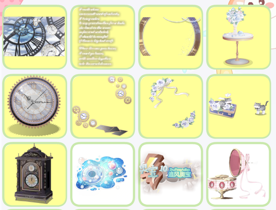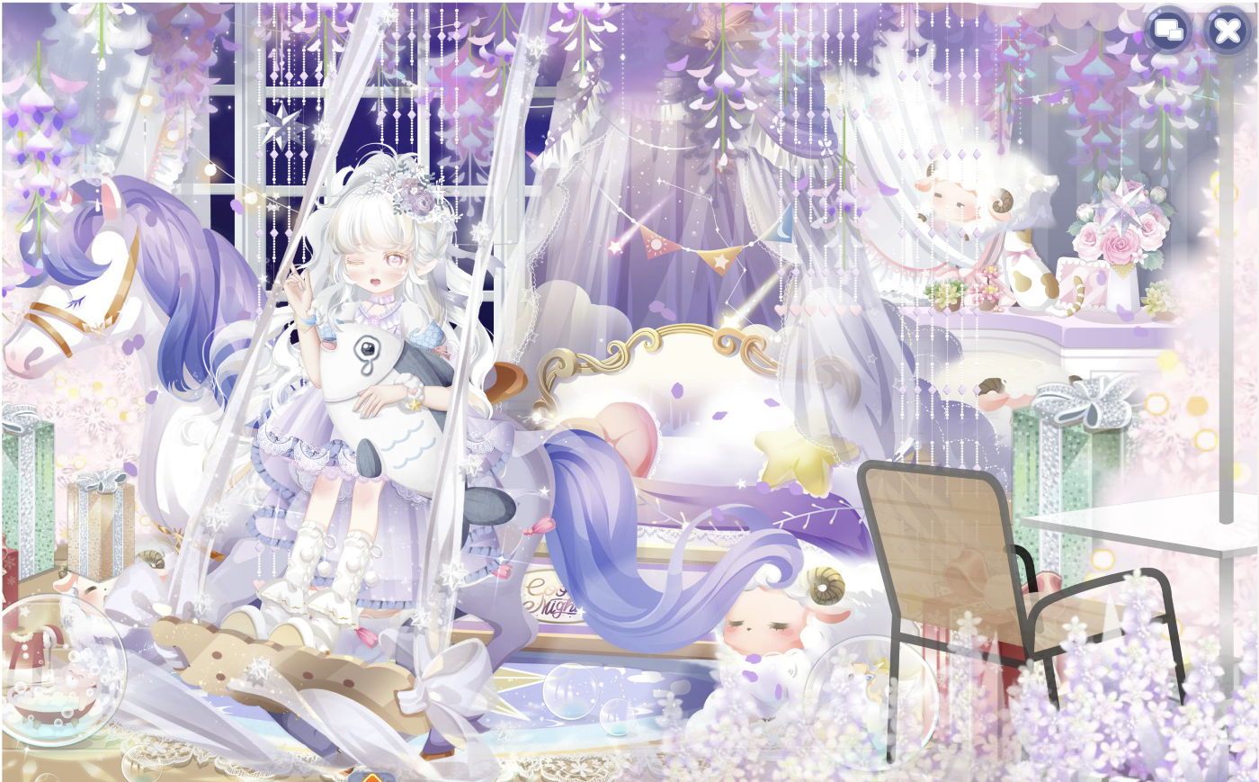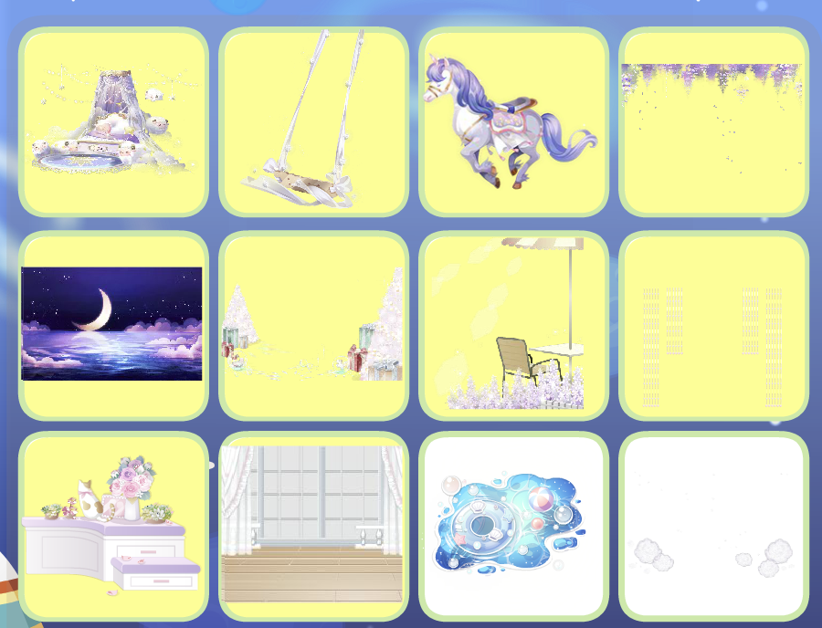 童谣咩咩的睡床、霜雪精灵秋千、爱是童话与木马、风信子千层花帘、恋·爱如潮水、棕麋幻光礼物、熊小姐勿忘我、浪漫满屋珠帘饰、浪漫满屋右飘窗、慵懒冬日房间