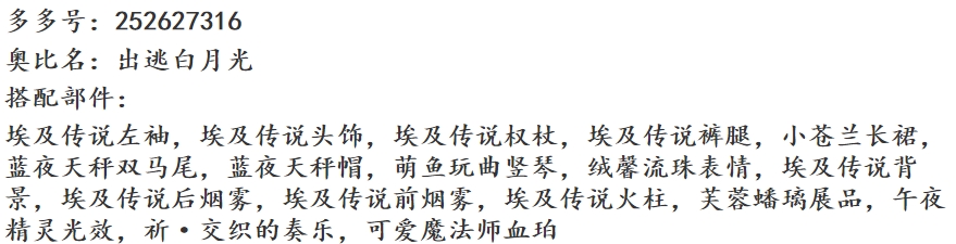 搭配部件:(部件名字和截图)部件需要文字版注明,不要只放图片哦!只放图片可能不会被