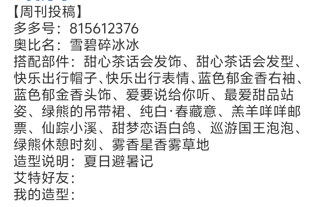 造型说明:(写得越认真的小奥比越有机会成为官网小编推荐的明星达人!)