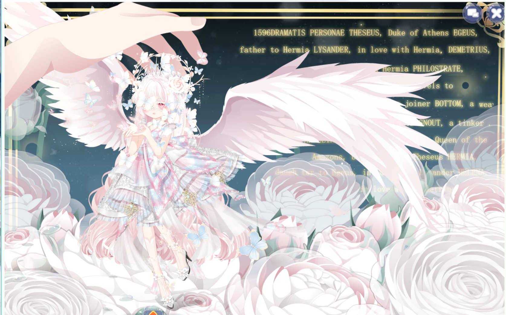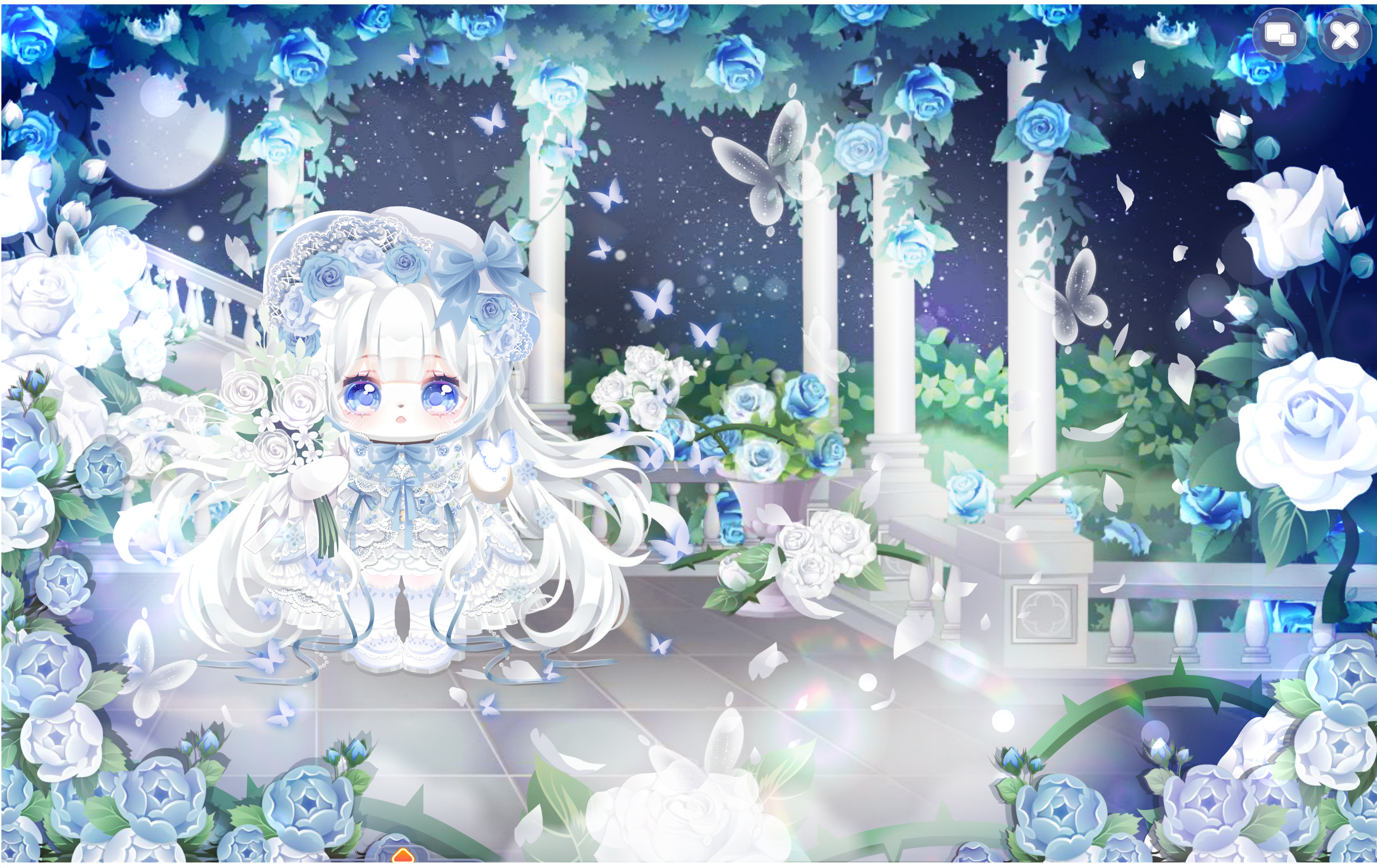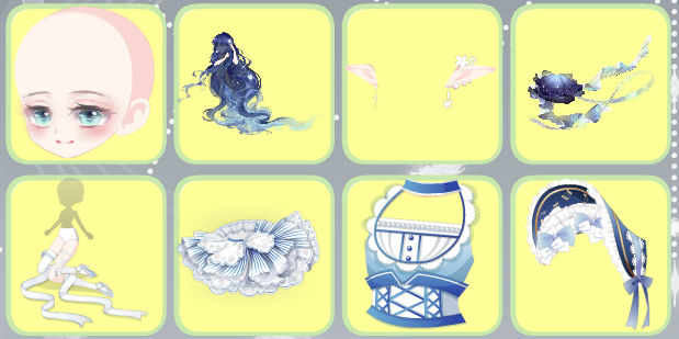 搭配部件:桃也悠悠站姿,朝颜听雨项链,玥·银镜拾光,风信子提琴袖子,再续前缘坎肩,噩梦终端惊讶嘴,纯真花少女头饰,周刊游戏天才,氐星白貉小耳坠,白女巫闭眼妆,缤纷幻想蓝背景,香薰悄待花期,风信子千层花帘,风信子舞曲宫殿,风信子庄园草坪,风信子音乐飞扬,怦然心动花廊,巨蟹座秘密星言,治愈追寻白蝶。