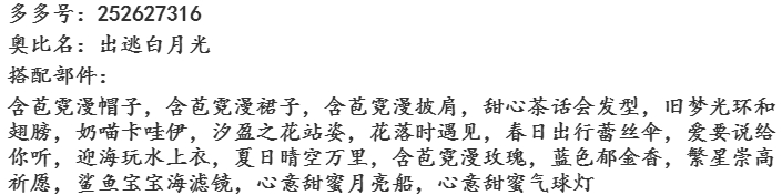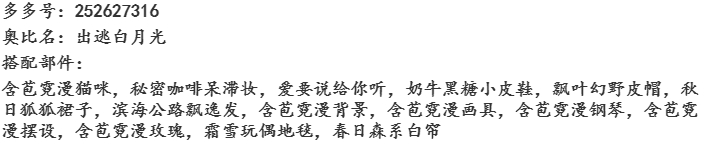 搭配部件:(部件名字和截图)部件需要文字版注明,不要只放图片哦!只放图片可能不会被