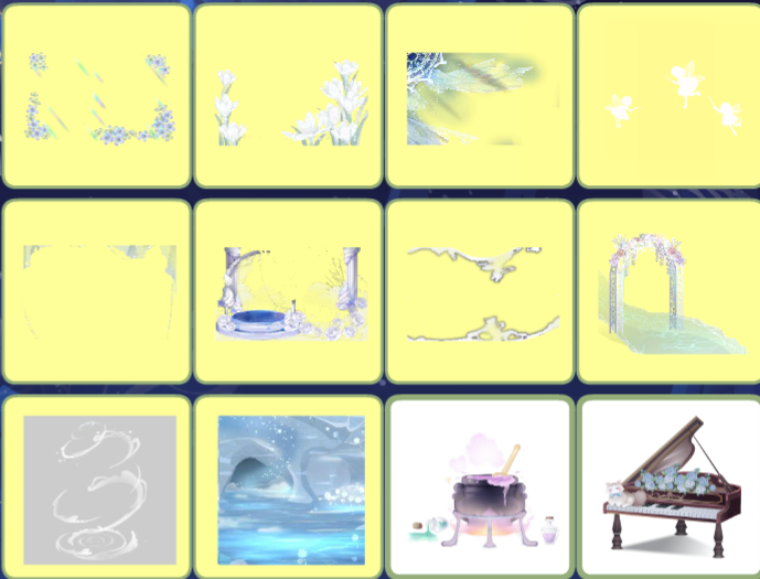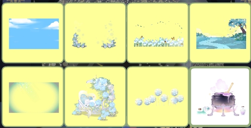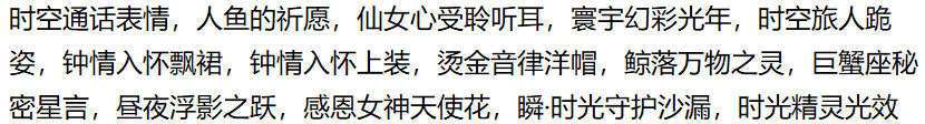 时光白番红花、繁星命理苍穹、繁星精灵邀约、星海碎梦珠帘、星海瑰丽舞台、珊瑚音乐大(pbc)波浪、紫嫣珊瑚拱门、辰时幻龙水涡、天(pbc)使光岩洞、汐盈之物前景