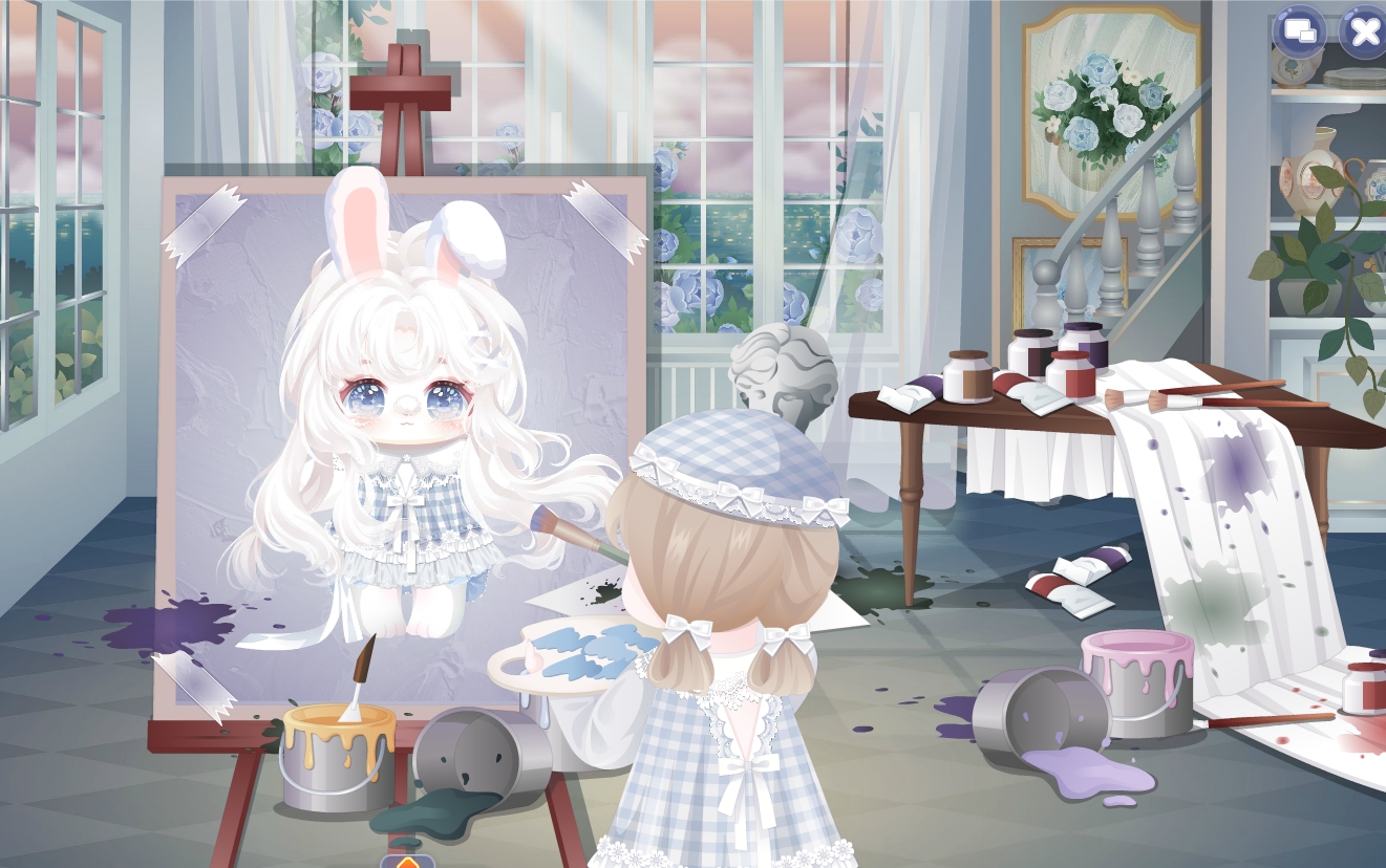 庄园卖萌兔耳朵,萌猫发夹,含苞霓漫背景,含苞霓漫画家,含苞霓漫画架,染熄木偶颜料桌,染熄木偶颜料桶
