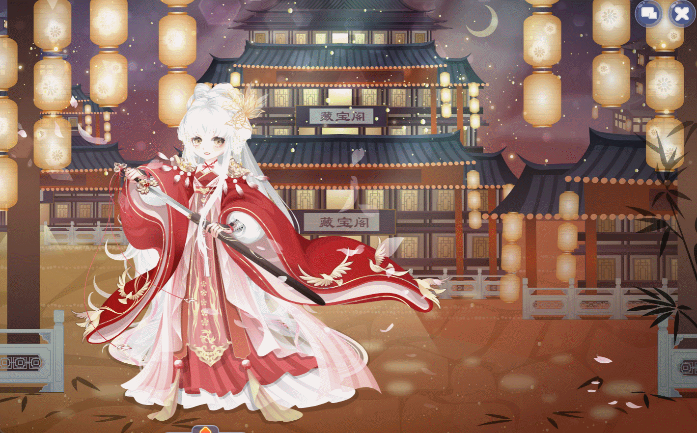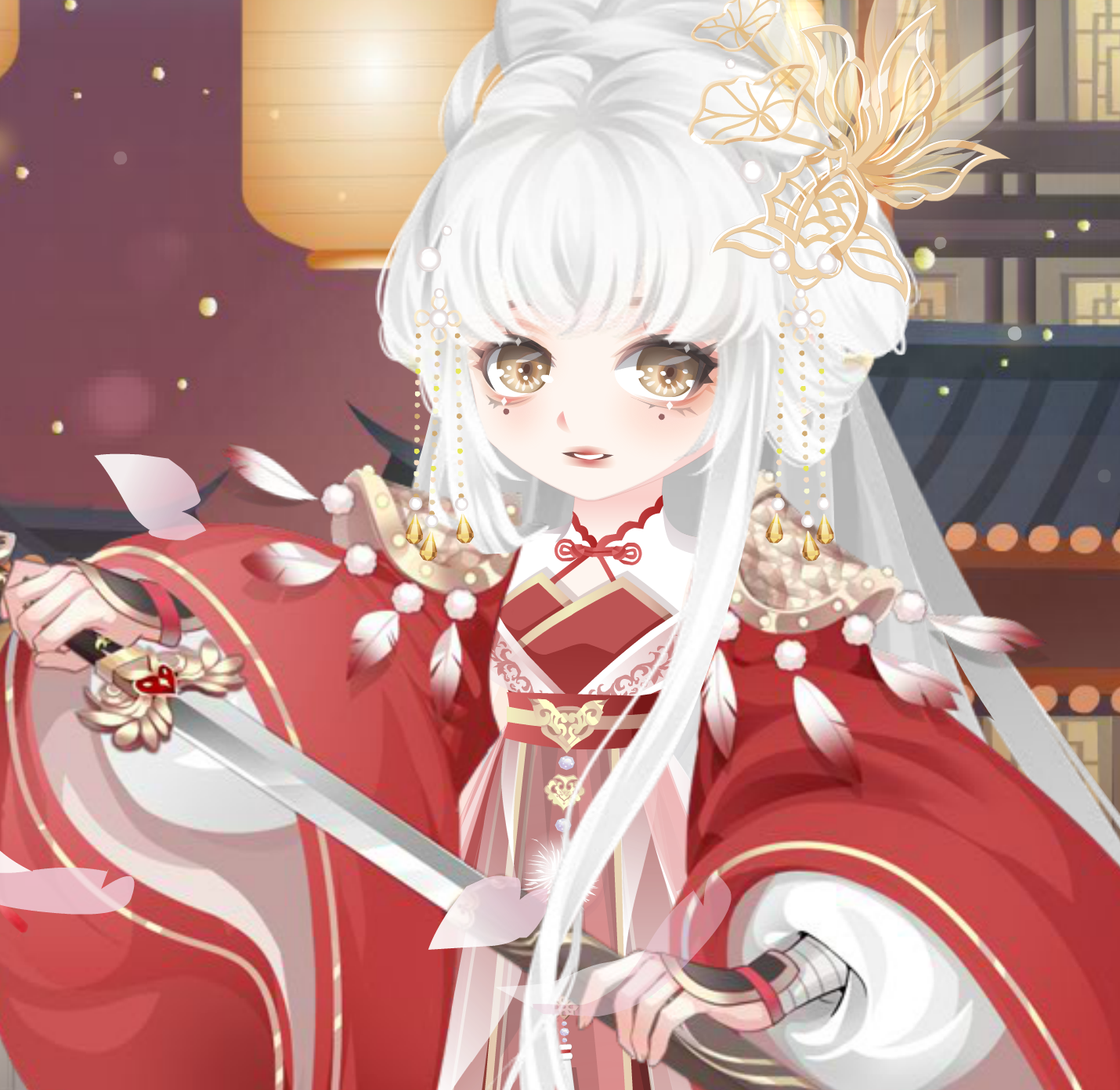 搭配部件:H.X凤锦半裙、H.X凤锦上衣、H.X凤锦发簪、H.X凤锦头饰、狐灵幻羽妆、H.X梅落提花耳钉、丹青水墨站姿、月桂古风轮椅、诗画女子品茶、飞燕轻舞玉盘、飞燕轻舞额饰、牡丹亭旦角长发型、相惜妹妹全身镜、相惜妹妹地毯、相惜妹妹梳妆椅、相惜妹妹背景、春日纸鸢拂柳、人鱼·浮光跃金、鹤羽振翅字句、异兽白鵺鸟笼、西关茶楼饮啖茶