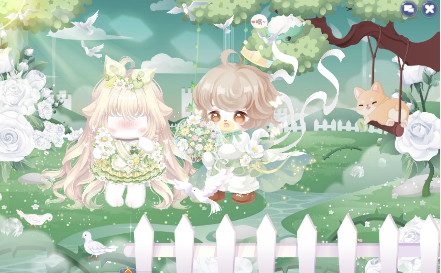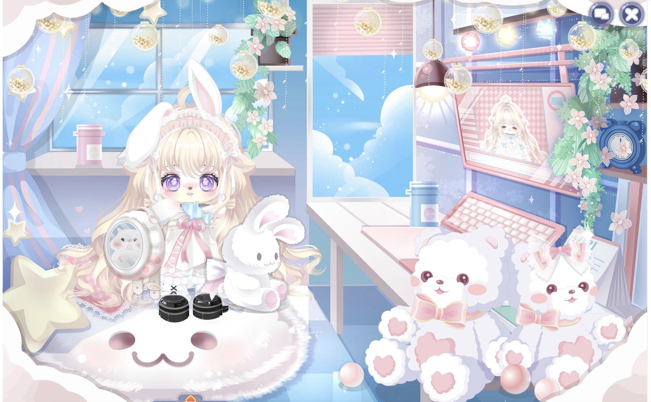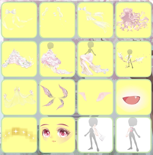 搭配部件:皎月星纱粉白裙,狐灵幻羽耳环,蜜桃奶盖右袖,童谣公主的美梦,春日·毛毛,诗意佳人俏皮妆,云端梦境之冠,夜美淑女慵懒卷;钟情叫卖小浣熊,钟情花若小粉绿,钟情门落千木樱,蜜桃奶盖密语,净·荆棘鸟阳光,猫与女仆背景,猫与女仆灯光,筑梦星精灵荧光。