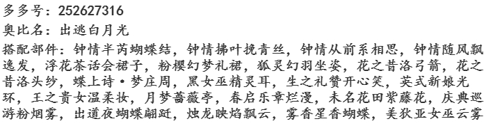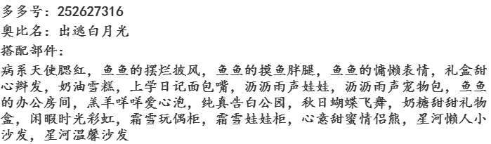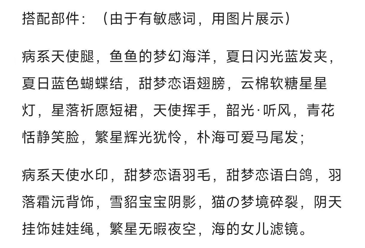 搭配部件:(部件名字和截图)部件需要文字版注明,不要只放图片哦!只放图片可能不会被