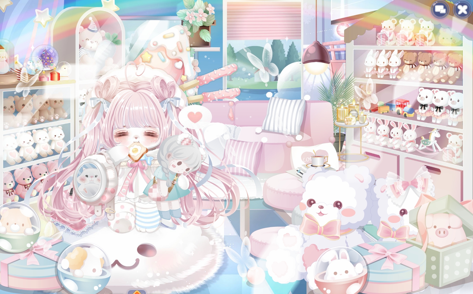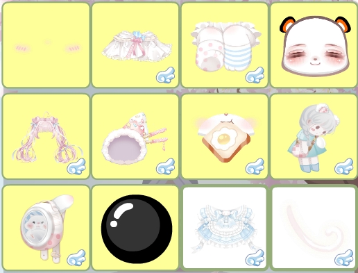 搭配部件:礼盒甜心发箍,烛焰迷失委屈妆,橘猫·安睡,熊市伤心嘴,布娃娃站不稳, 布娃娃纽扣帽, 布娃娃长卷发,睡意小裙子,礼盒甜心背景,礼盒甜心礼盒,猫の梦境碎裂,猫の小猫日报,秋日蝴蝶飞舞,蝴蝶就喜欢你。