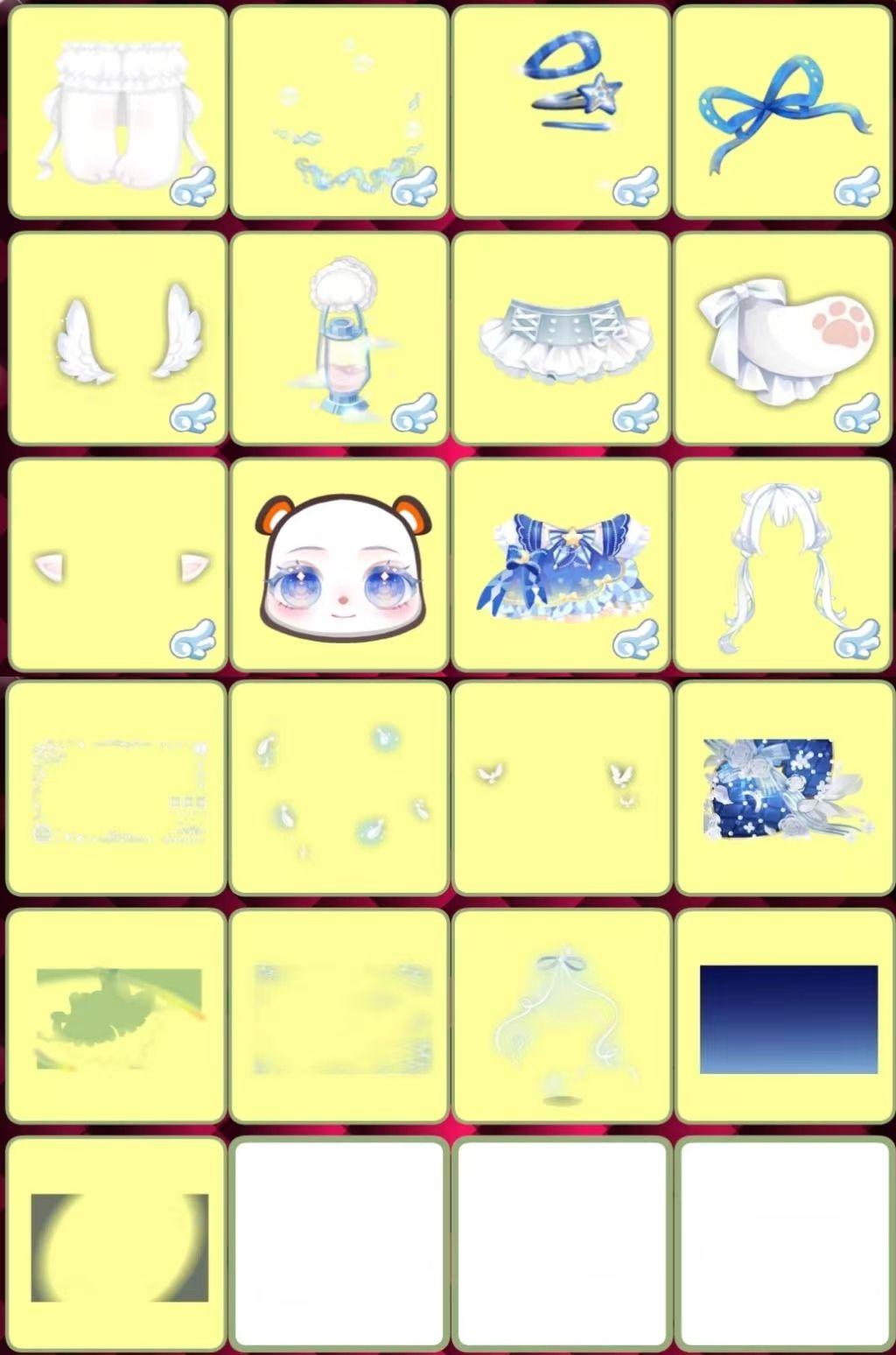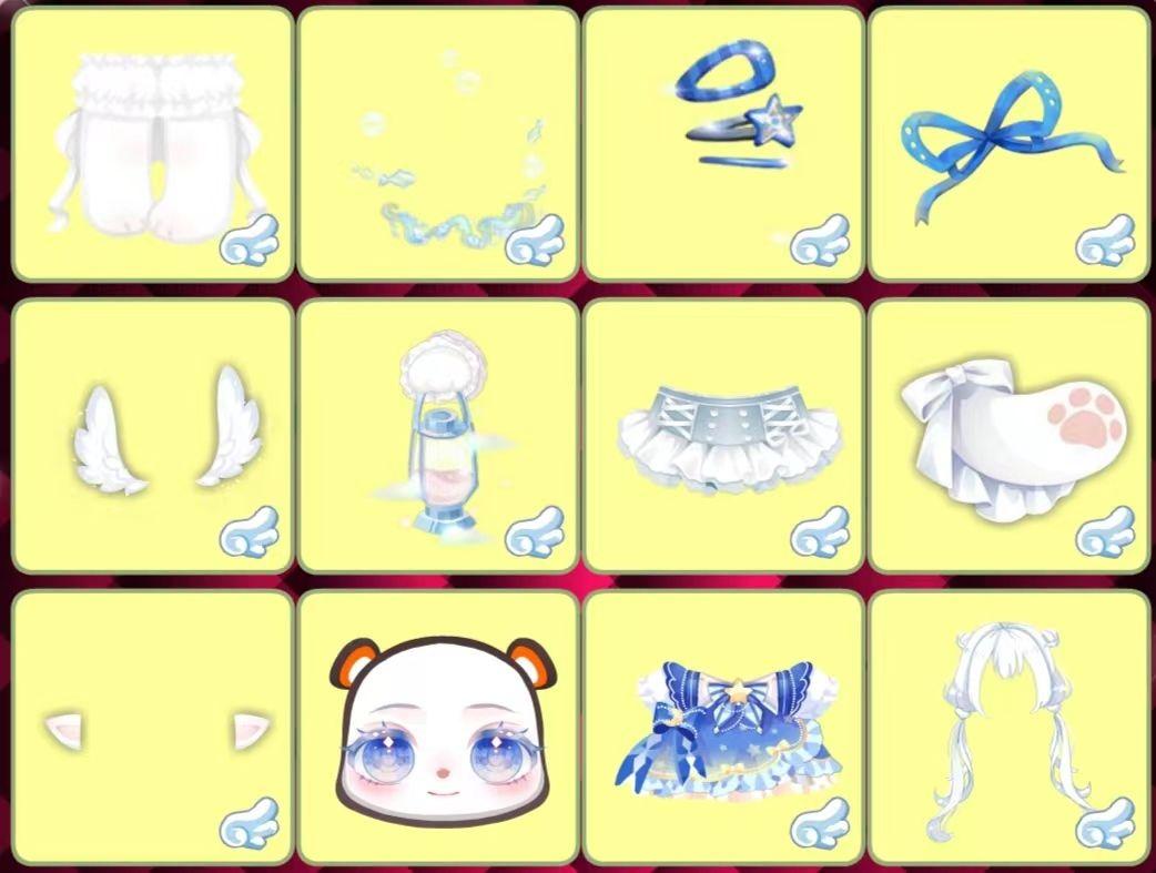 鱼鱼的可爱兜帽、鱼鱼的摸鱼胖腿、鱼鱼的慵懒表情、旧梦童话故事手、云棉软糖魔法手、萌趣乐园裙子、星海歌姬打歌服、鹿•启明晨星、