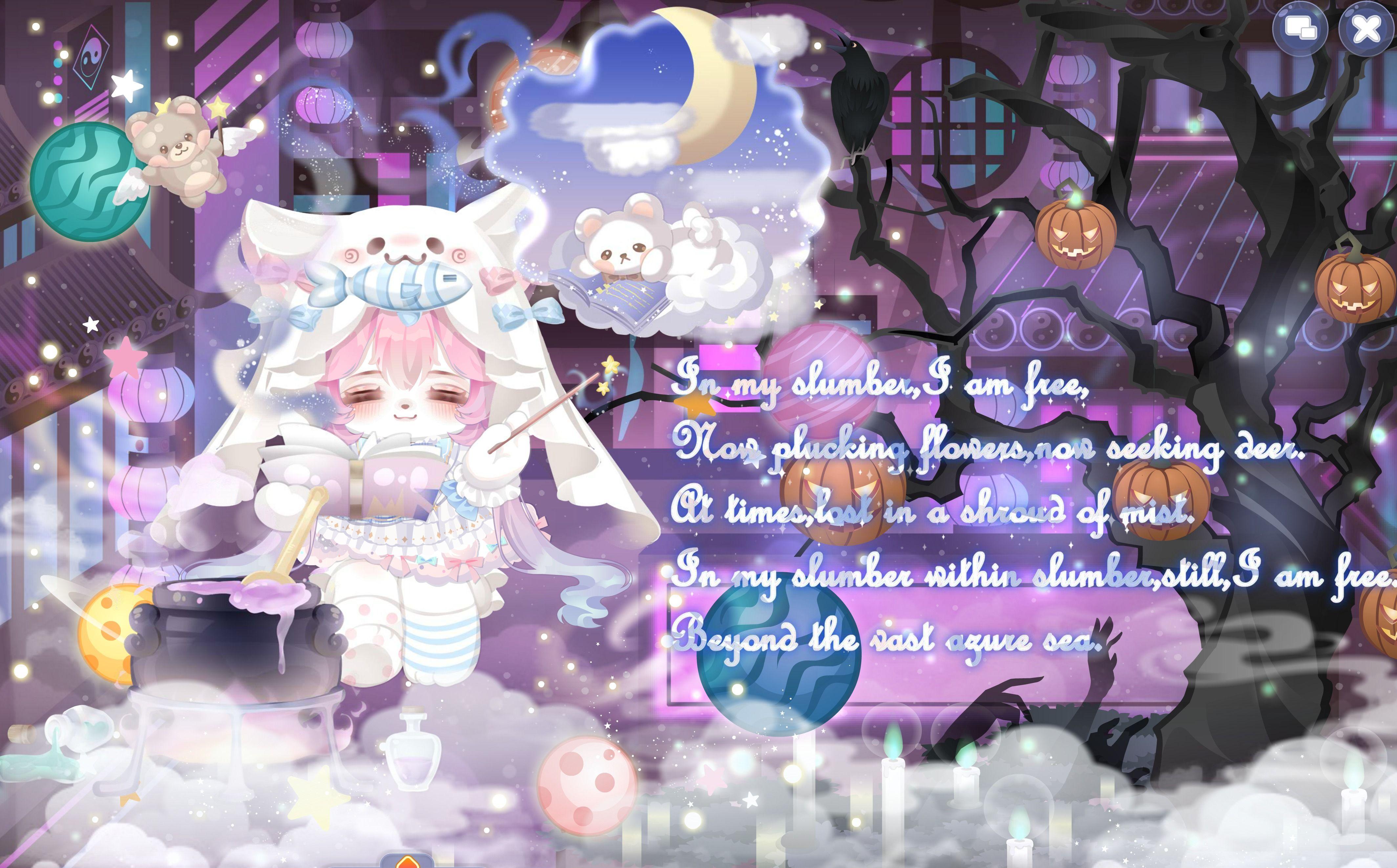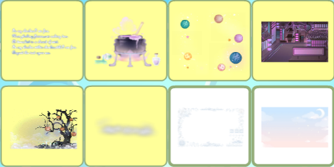 鱼鱼的蓝色诗篇、魔药泡泡炼丹炉、环游星际、帅气侦妖官背景、暗夜奥比枯树、高节凌云云雾