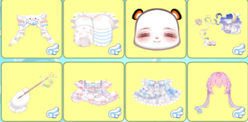 搭配部件:鱼鱼的摆烂披风、鱼鱼的幻想长发、亚比酷酷鞋、柜中表演陶醉妆、沥沥雨声宠物包、奶糖甜甜头饰、洗澡可爱兔玩偶、午后贝贝耳饰、海的女儿腮红、鱼鱼的办公房间、夏日晴空万里、儿时朦胧的记忆、心意甜蜜星灯瓶、心意甜蜜情侣熊