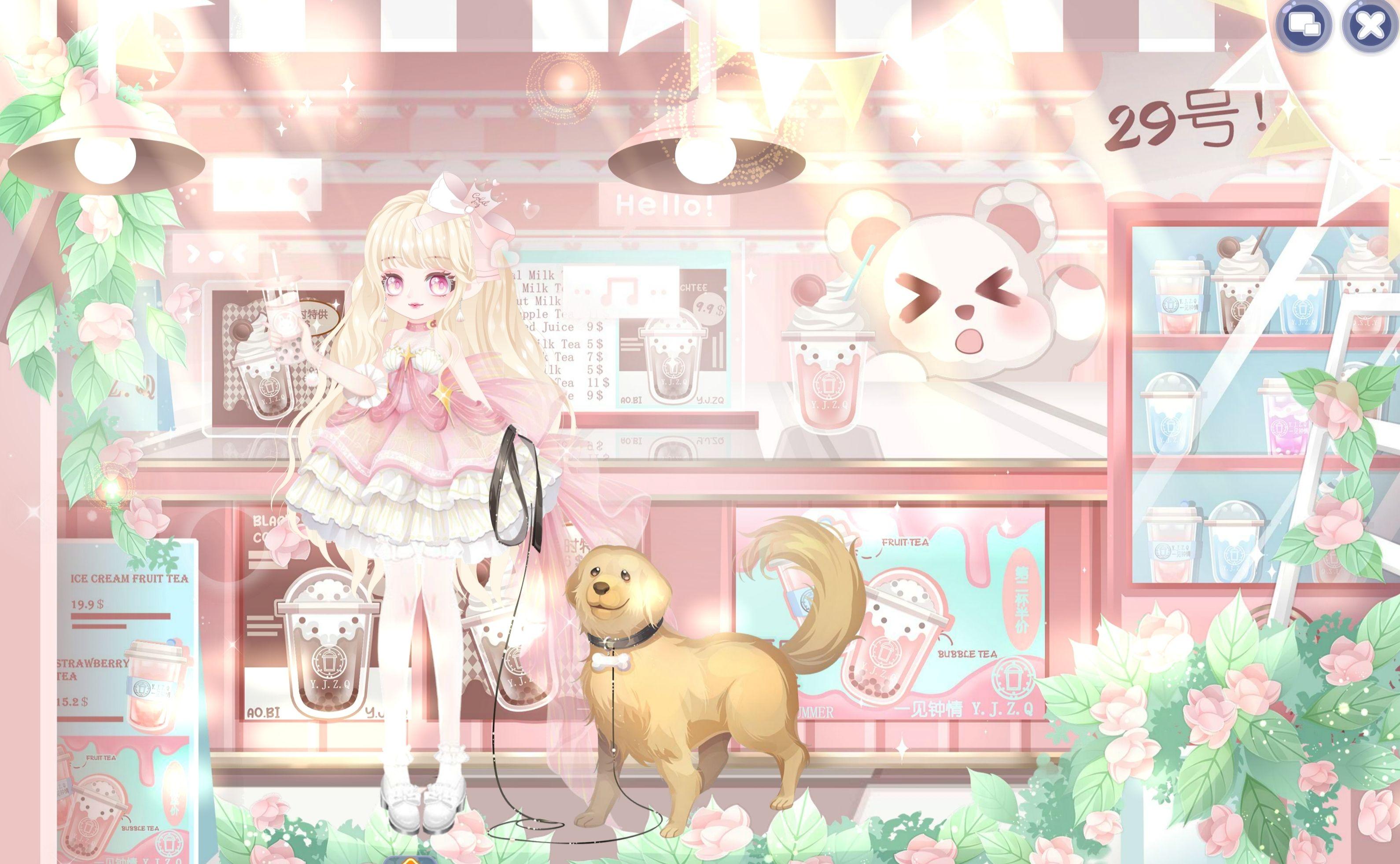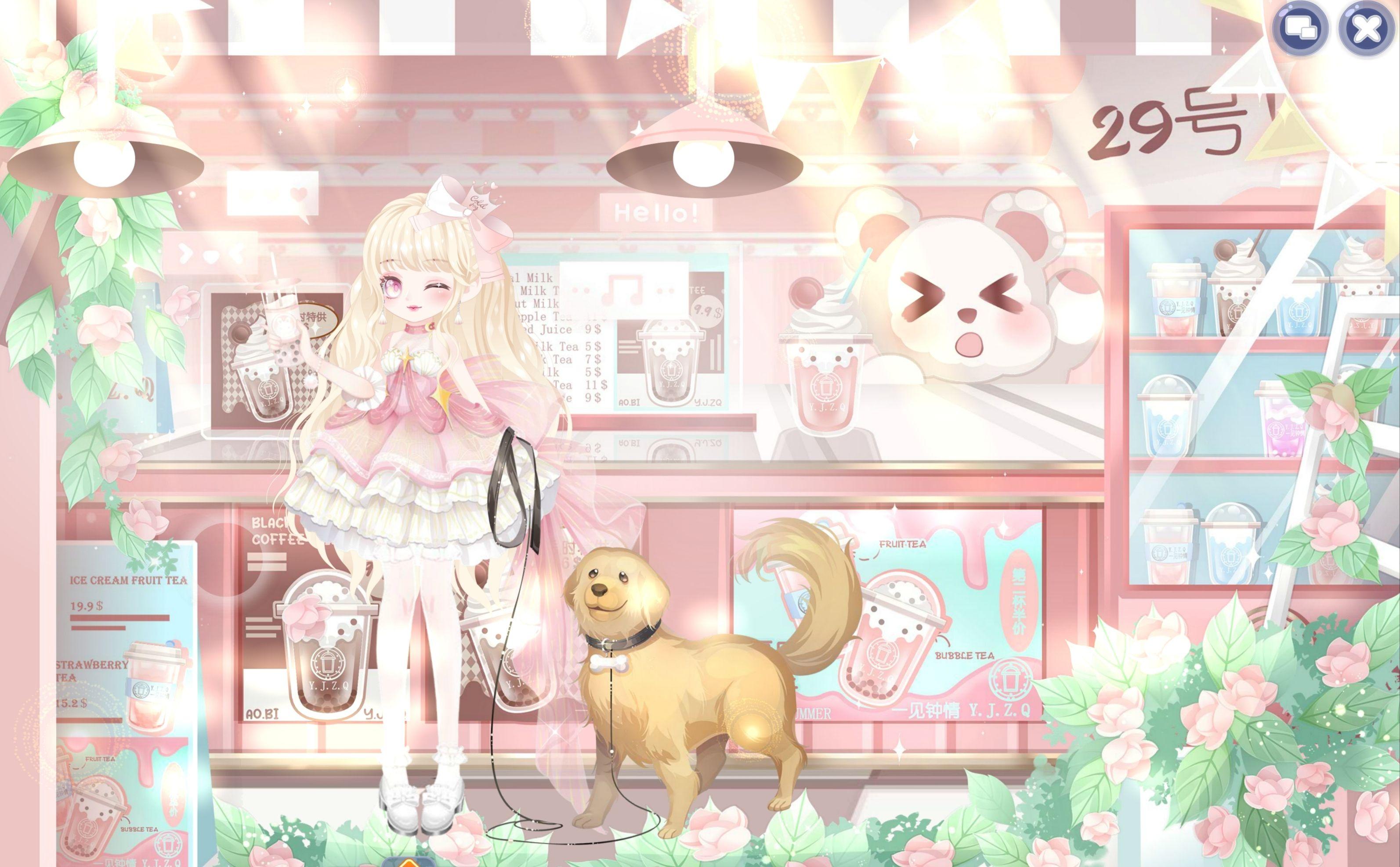 造型说明:粉色调的29号小店是惊喜始发站,身着甜系粉裙,带着阳光开朗的“修狗”,手捧沁爽饮品,要把这份从温馨小店打包的甜蜜,化作给所有人的惊喜快递~ 可爱萌趣氛围里,藏着给奥比岛的浪漫投递。