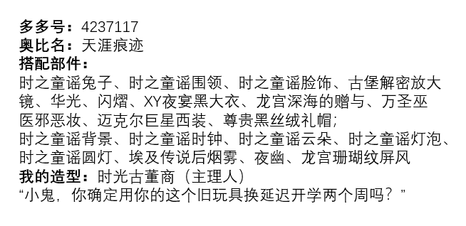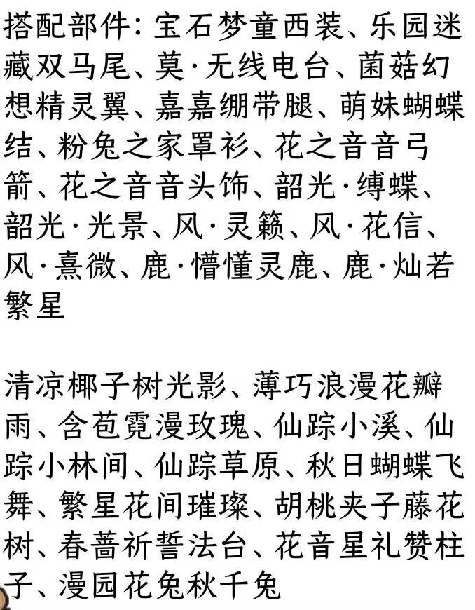 搭配部件:甜心粉星洛丽塔,奶白立耳兔下装,奶白立耳兔包包,奶白立耳兔背结,净·梦舞彩蝶双辫,邻家萝莉兔耳,生之礼赞开心笑,时光精灵微笑妆,雪媚娘甜点勺,天秤魔力背景,蜜桃奶盖密语,甜心梦境融化,缘来·记忆定格,甜蜜兔子约会,爱意表白花瓣烛,爱意表白字母箱,爱意表白婚戒台,爱意表白迎宾牌,爱意甜蜜绽放,邻家熊兔求抱抱,未来星偶像城堡,甜心蕾丝窗帘,雪媚娘甜点盘