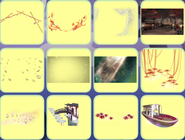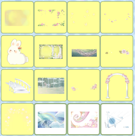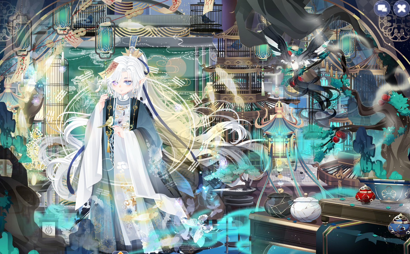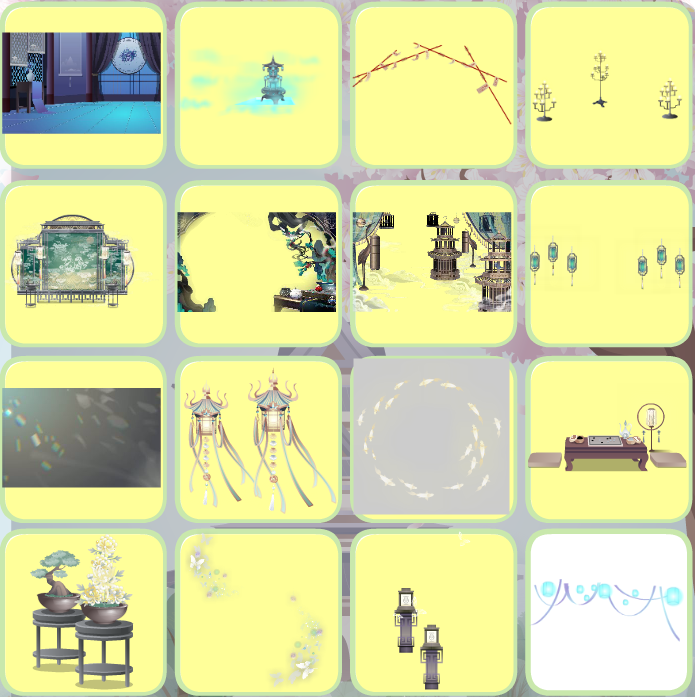 背景:岚烟缚心灯笼、楚挽瑶意长廊、邮纪心使背饰、怜星挽琴背饰、招财猫猫飘雪、白月光璀璨背景.