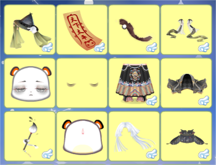 背景:岚烟缚心灯笼、岚烟缚心灯笼符咒、邮纪心使背饰、怜星挽琴背饰、招财猫猫飘雪、昼染层叠音浪、白月光璀璨背景.