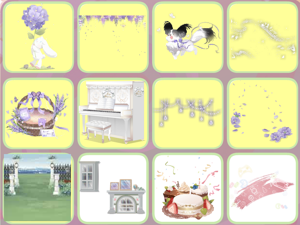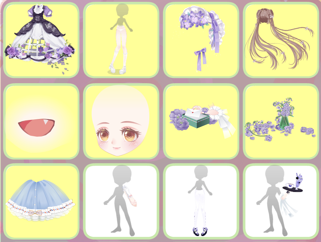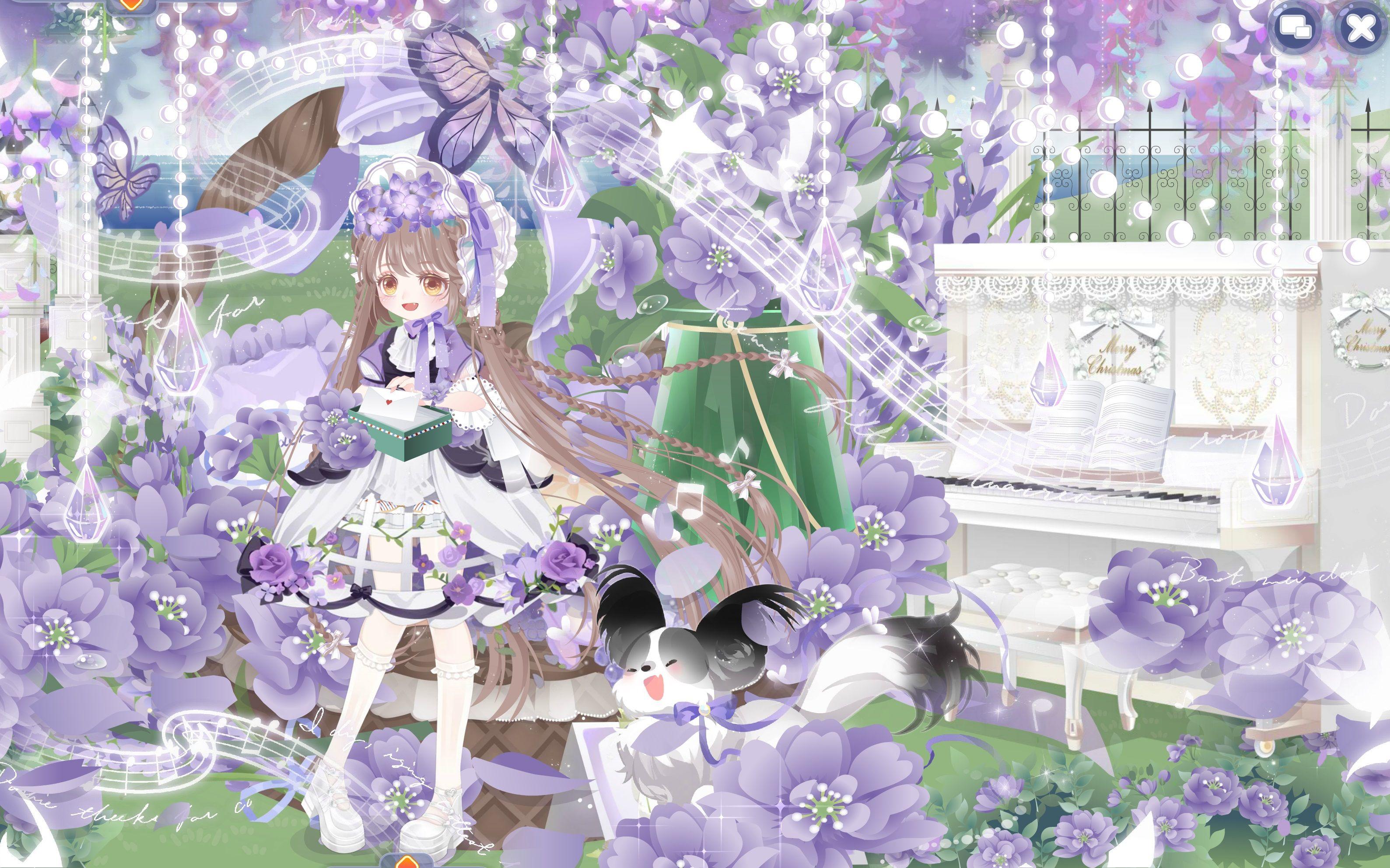 搭配部件:紫韵花簇连衣裙,钟情爱恋害羞姿,风信子贵族礼帽,熊小姐甜软马尾,生之礼赞开心笑,时光精灵微笑妆,恋·紫罗兰左袖,恋·紫罗兰花,恋·紫罗兰裙,田园绣球花小兔,风信子千层花帘,风信子伴舞小狗,风信子音乐飞扬,薰衣织梦,芬兰新娘钢琴,花梦萤蝶水晶坠,恋·紫罗兰花瓣,恋·紫罗兰背景